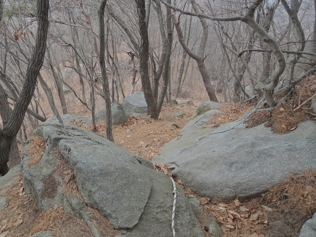 ▲ 마니산 종주 코스는 등산로 종점에서 밧줄을 살짝 넘어갑니다.