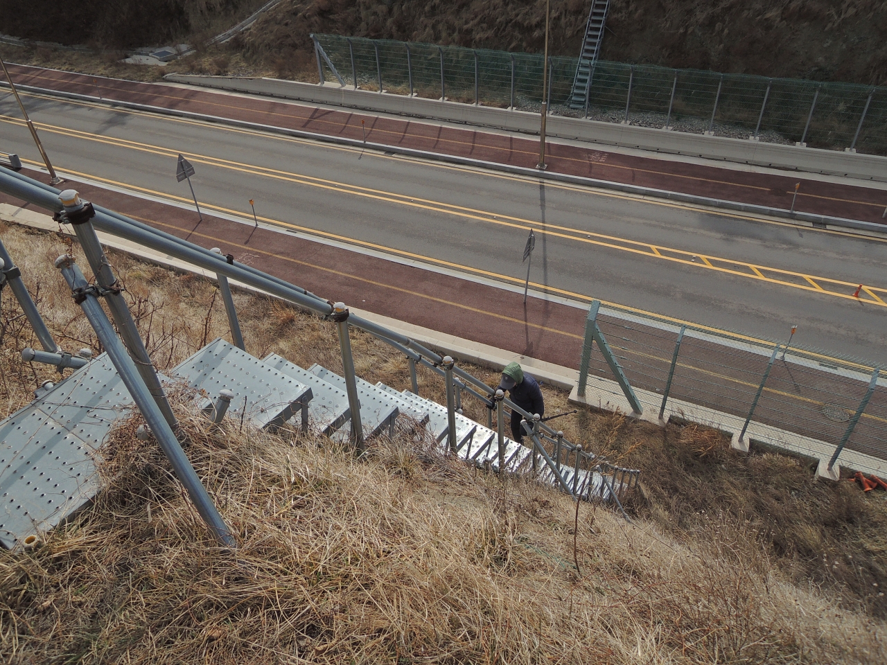 ▲ 급경사 철계단 따라서 올라갑니다. 직진해서 장자대교에서 오른쪽으로 가도 장자교로 갈 수 있습니다.