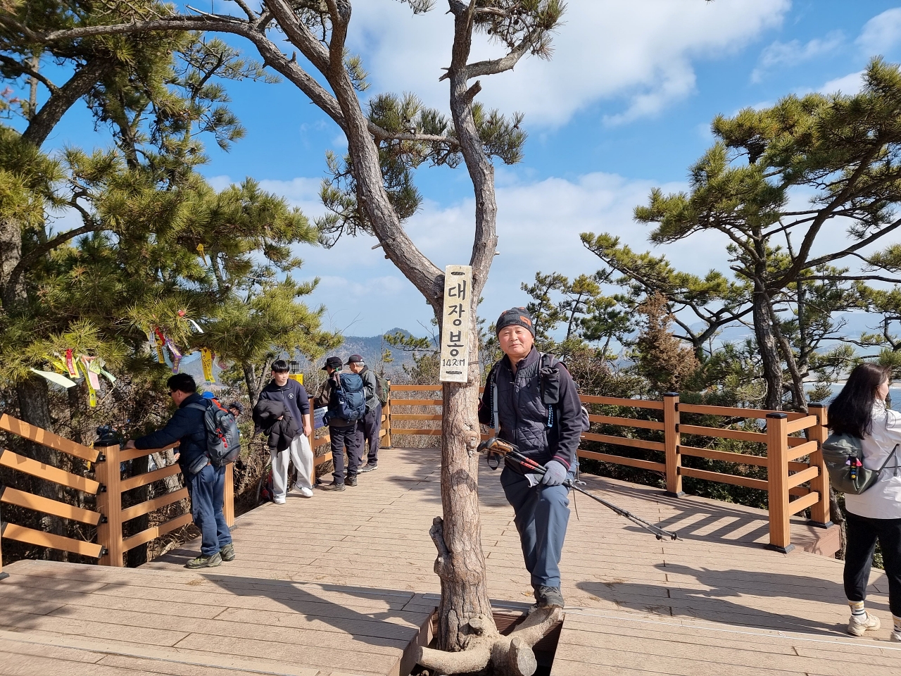 ▲ 등산로 오른쪽으로 대장봉 정상 데크가 보이고