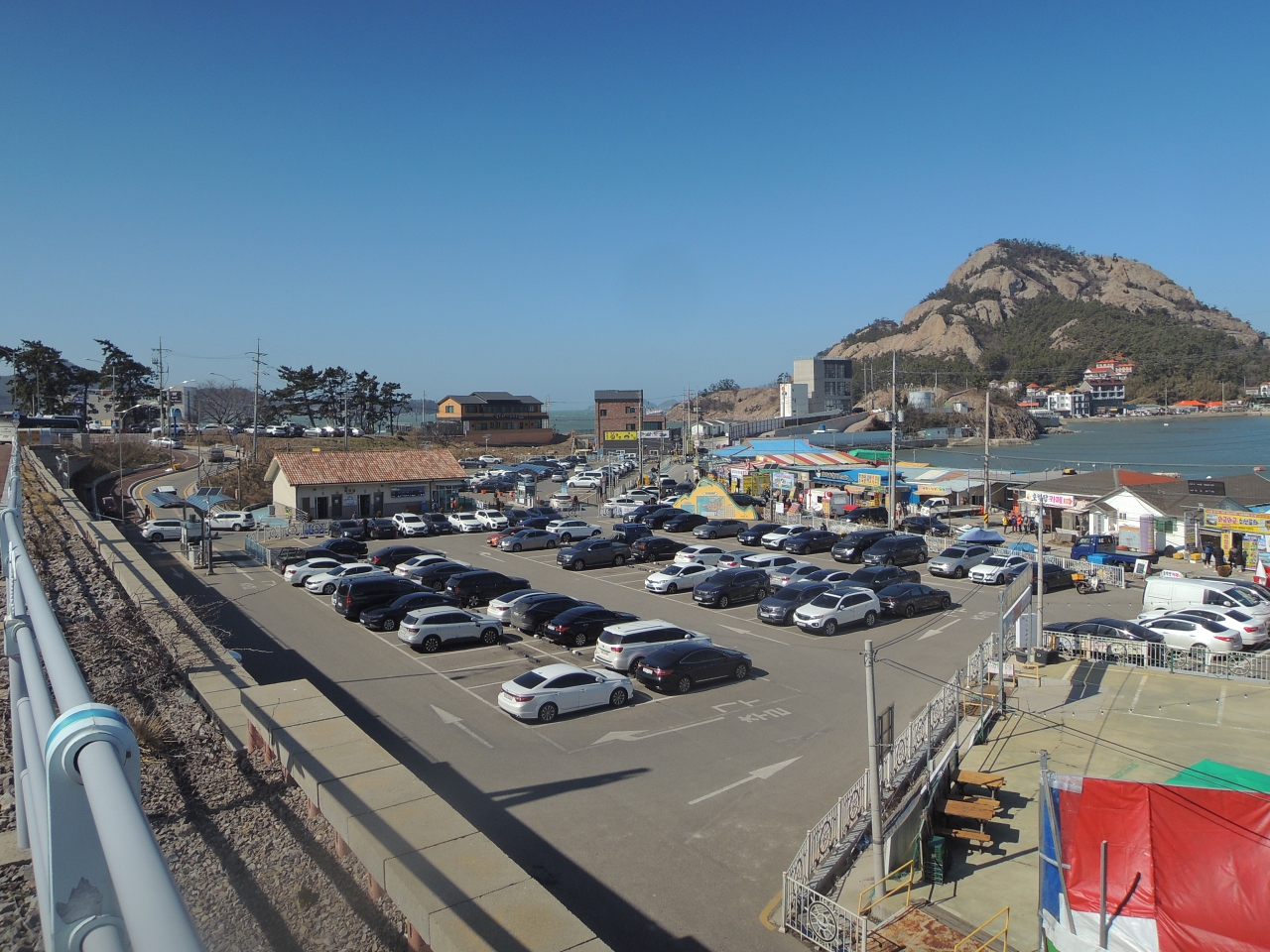 ▲ 장자대교 방향으로 가면서 장자도 공영주차장을 뒤돌아 봅니다.