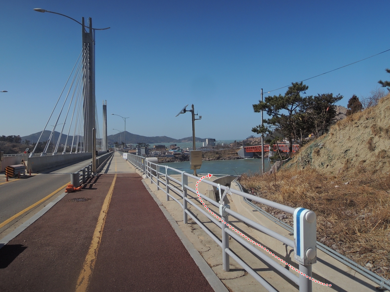▲ 장자대교를 건너와서 장자대교를 뒤돌아 봅니다. 이곳에서 화살표 방향으로 가면 장자교 방향으로 갑니다.
