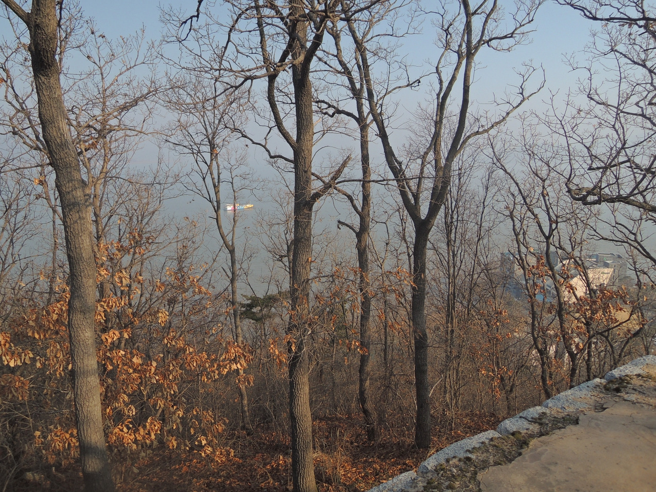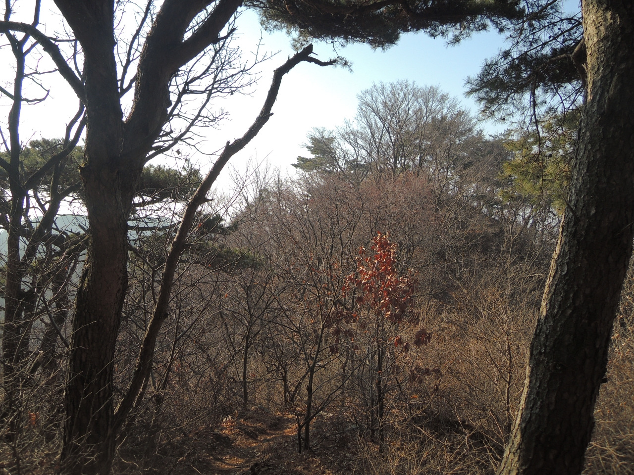 ▲ 등산로 오른쪽으로 바다가 나뭇가지 사이로 보입니다.