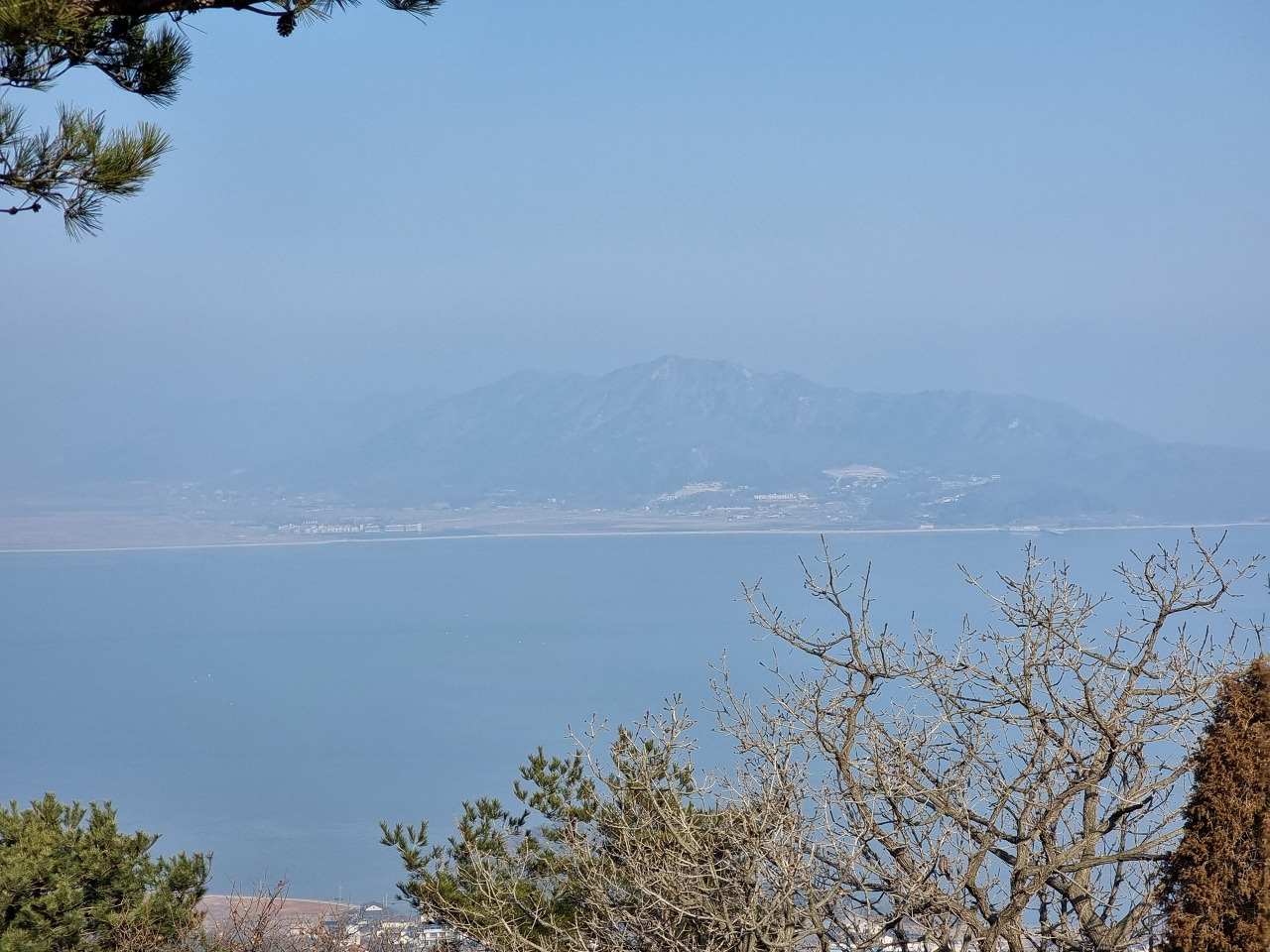 ▲ 선수돈대에서 나뭇가지 사이로 바다를 바라봅니다.