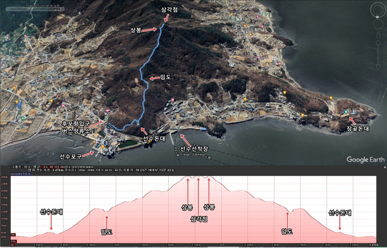 ▲ 구글어스 강화도 마니산 상봉 등산 GPS 트랙 및 고도