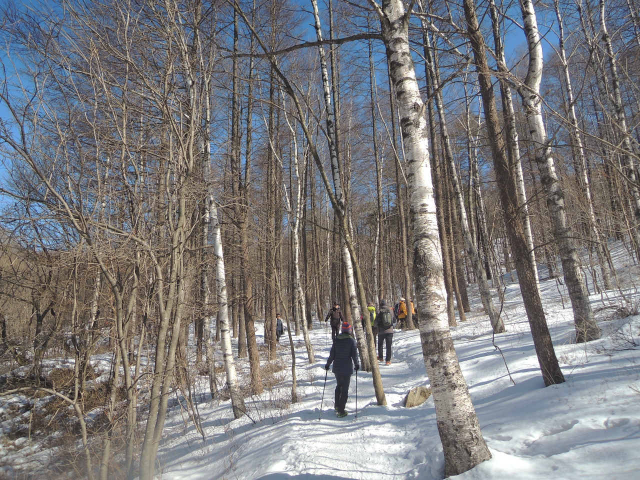 ▲ 샘터 구경하고 다시 완만하게 자작나무숲을 지나갑니다.