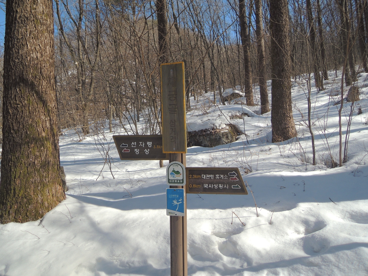 ▲ 재궁골갈림길에서 4분 후, 국사성황사 갈림길이 보이는데, 계속 선자령 방향으로 갑니다.
