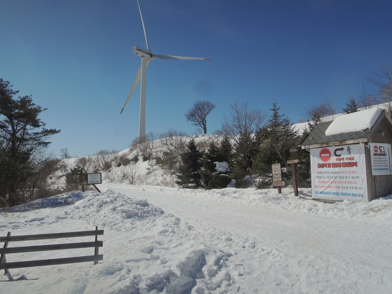 ▲ 풍력발전기가 있는 방향으로 임도 따라서 계속 갑니다.