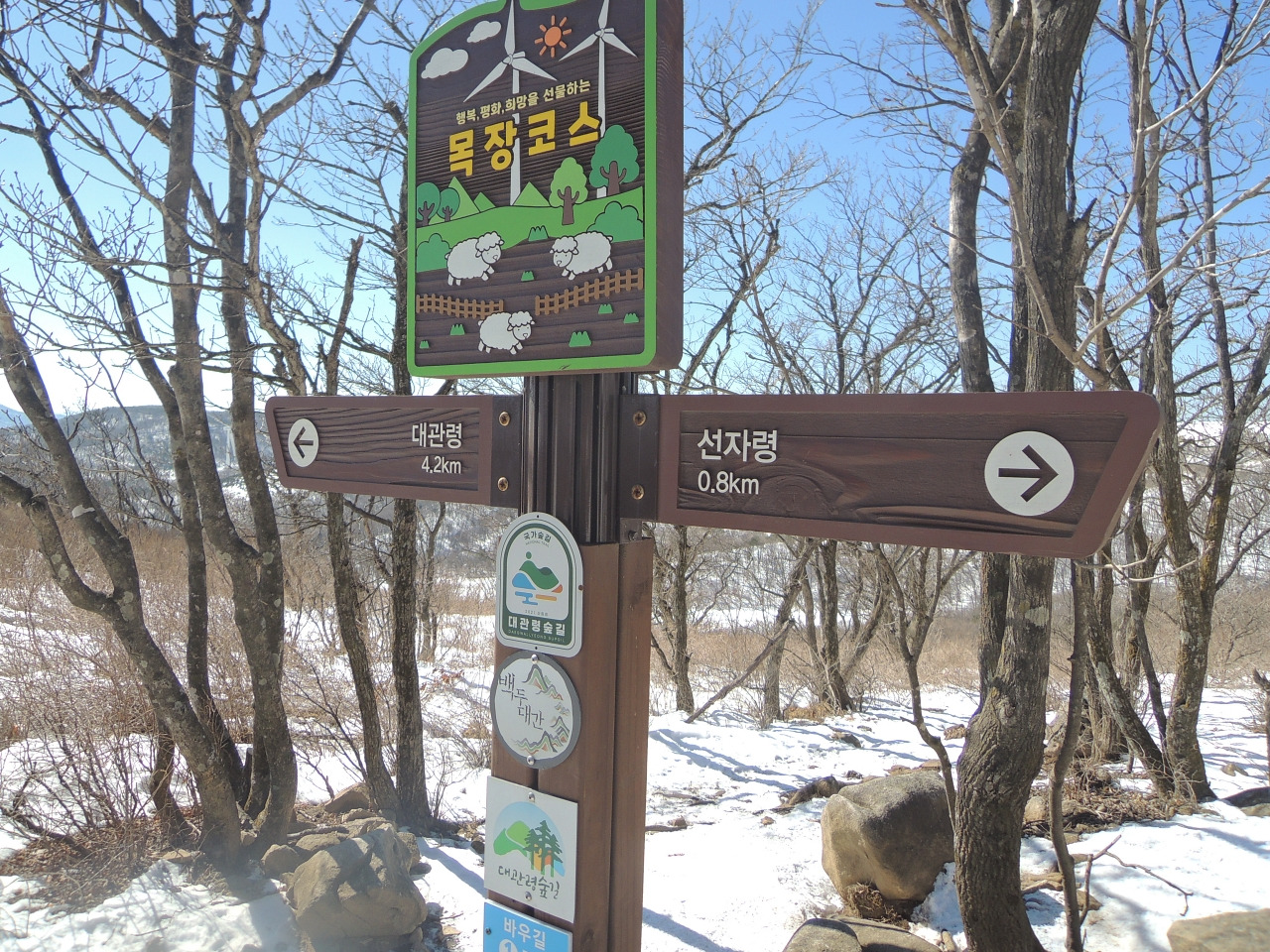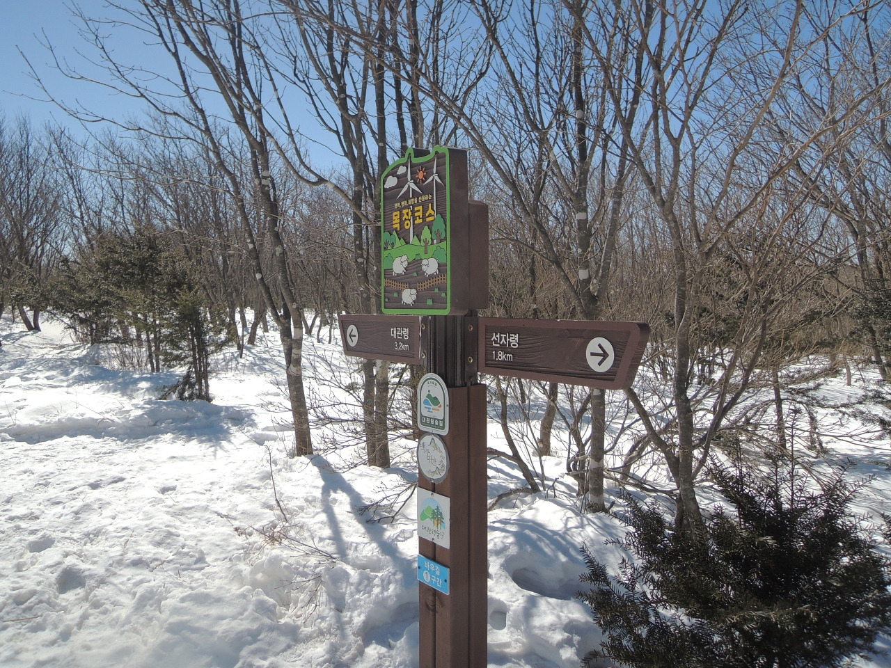 ▲ 등산로에 목장코스 이정표가 있습니다. 대관령 방향으로 계속 갑니다.
