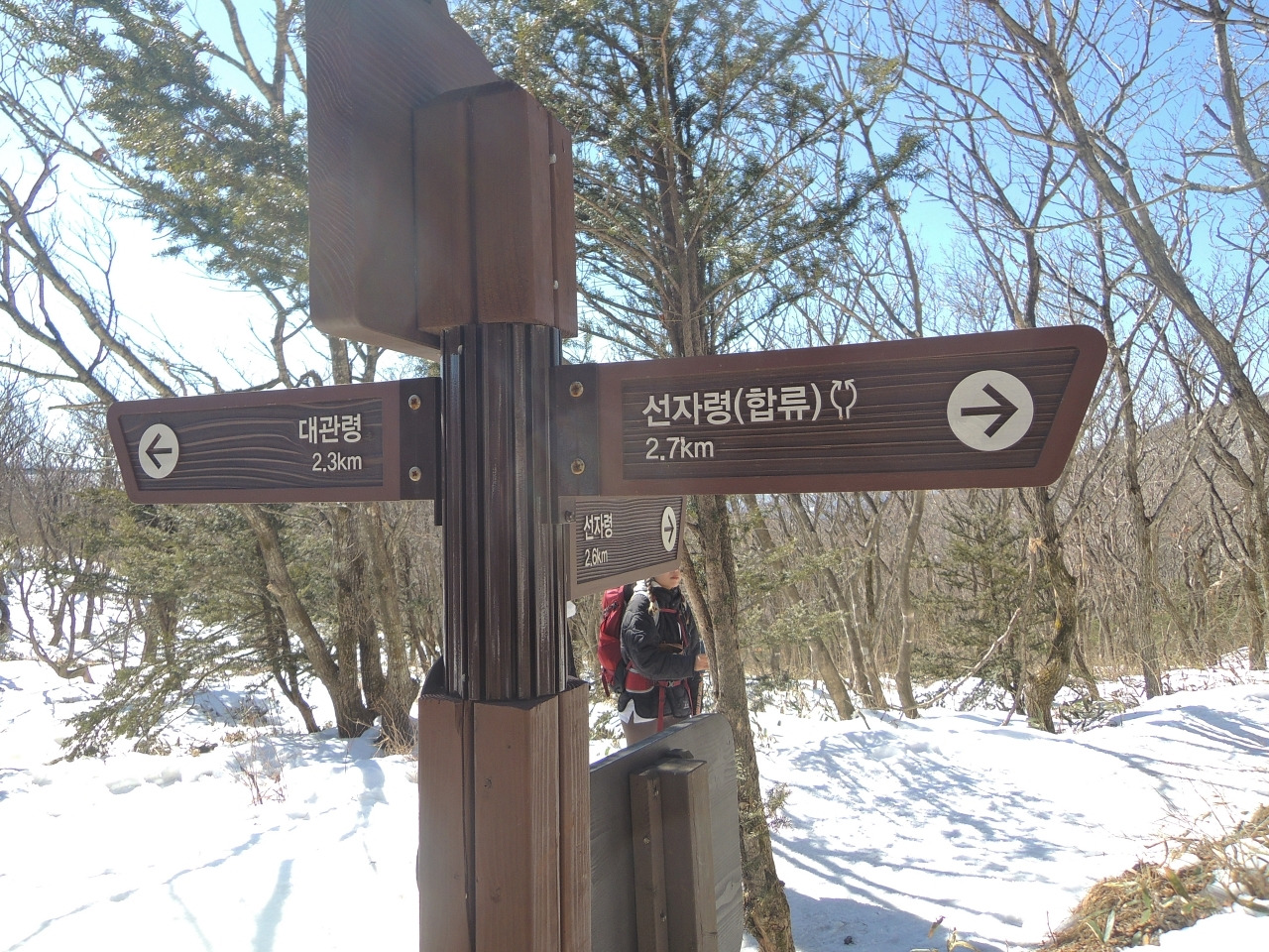 ▲ 위 사진에 보이는 이정표 입니다. 대관령 방향으로 계속 갑니다. 선자령(합류) 방향에서 내려왔습니다.
