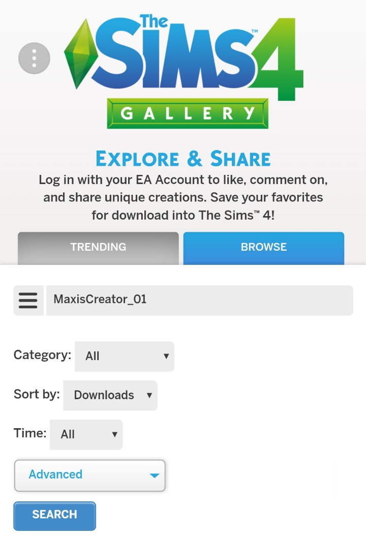 https://www.ea.com/games/the-sims/the-sims-4/pc/gallery 에서 Browse 클릭