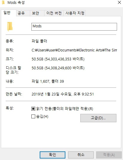 백업폴더에 있는 패키지상태 CC용량입니다. 갯수가 어마어마;; 이대로 플레이하면 로딩이 대략 25분(?)여 걸립니다.플레이시 렉도 걸려요 ㅠㅠ