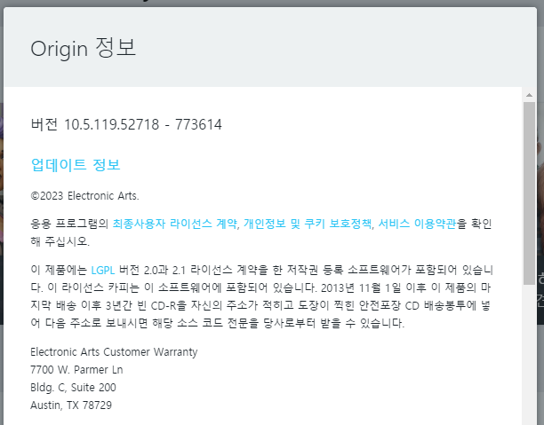 5. 오리진 로그인 합니다. 오리진 10.5.119.52718 버전이 맞는지 확인하세요.
