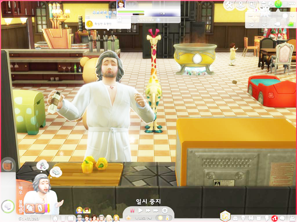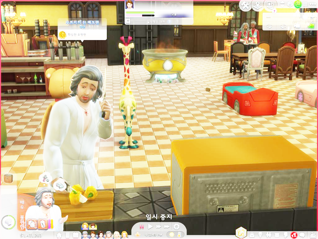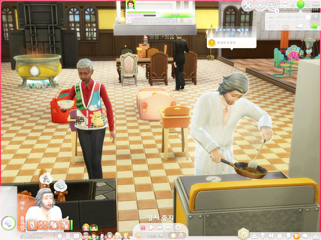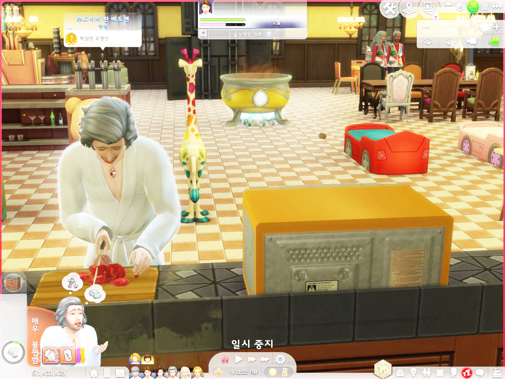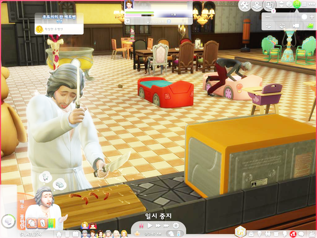 꺄악 아파 썅!- 어 칼이 날아가... 아 아래에서 비명소리 난다고? 신경꺼라 쇼팽이란 녀석이다. 늘 구석에 숨어있지. 아니 오늘은 왜 아래 식기 세척기에 숨어있는 거야?
