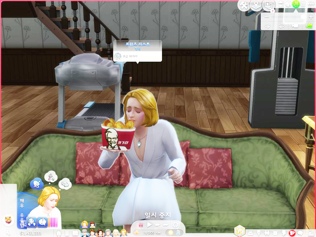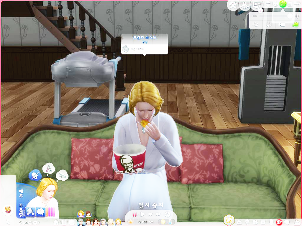 치킨 맛이 꽤나 마음에 든 모양입니다. 평소 화장품으로 우아하게 가꿨다고 자부하는 손가락에 기름이 묻지만 손가락에 묻은 기름마저 맛있다고 생각하는 리스트 씨입니다.
