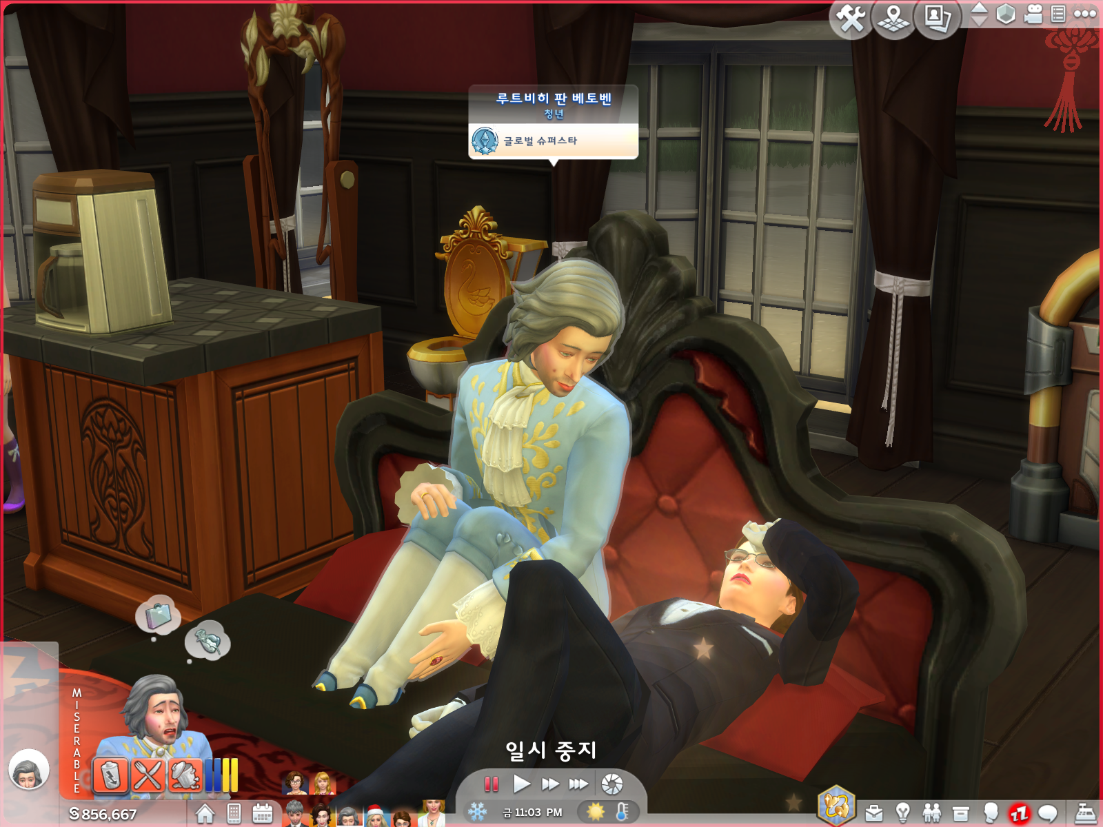 그의 답변을 들은 베토벤은 슈베르트를 말 없이 안아주었다. 그리고 21세기의 심즈 세계, 환생 후 처음 마주친 두 심은 동시에 이야기했다.