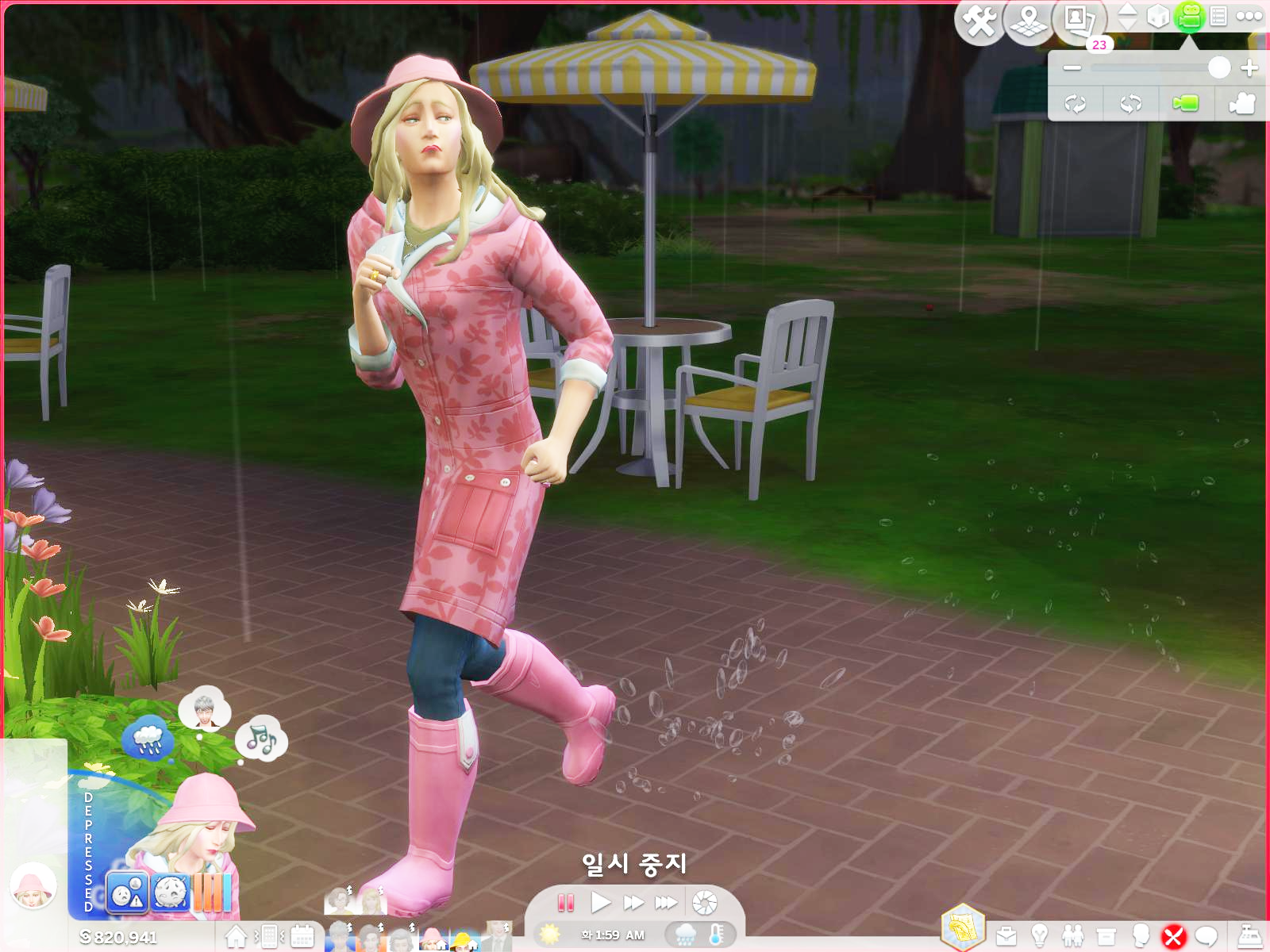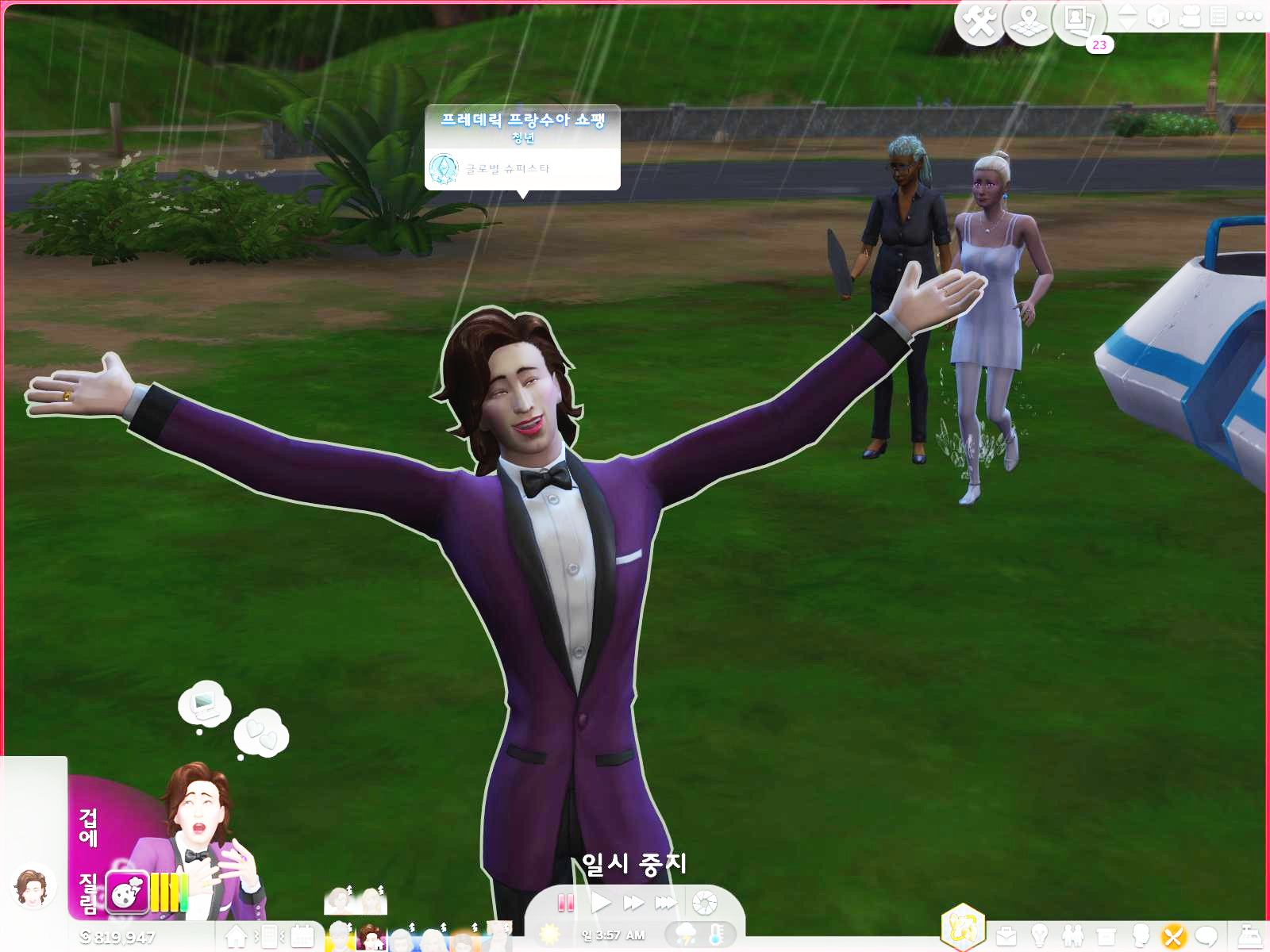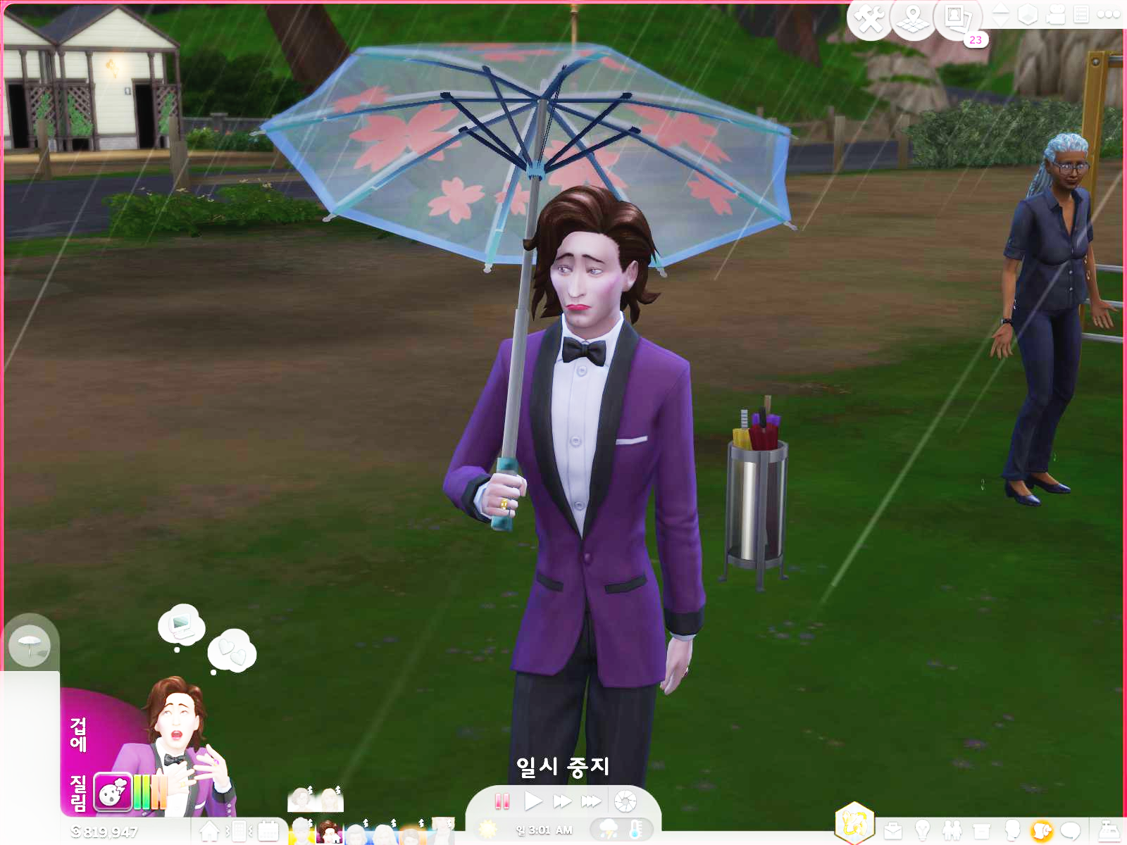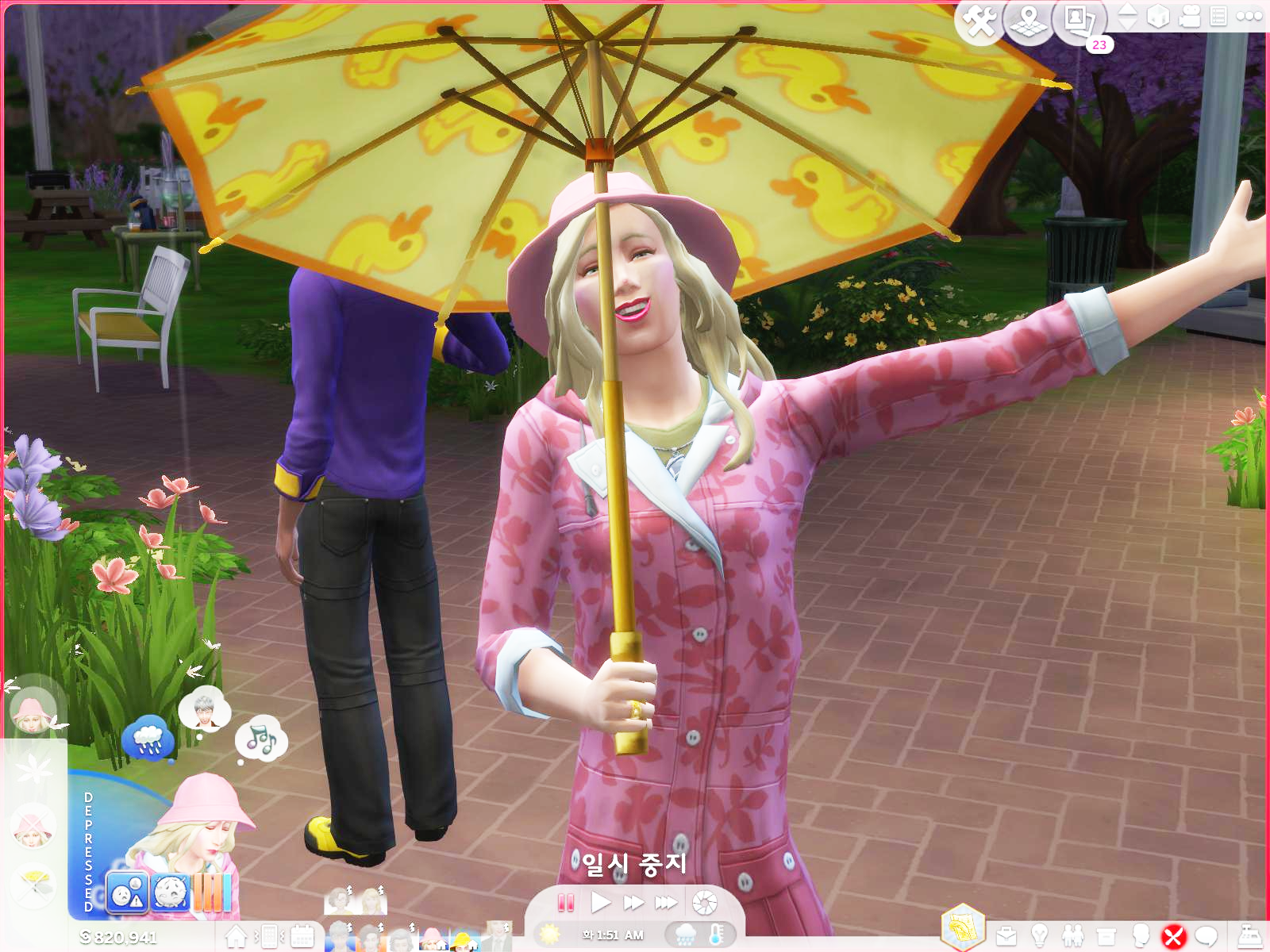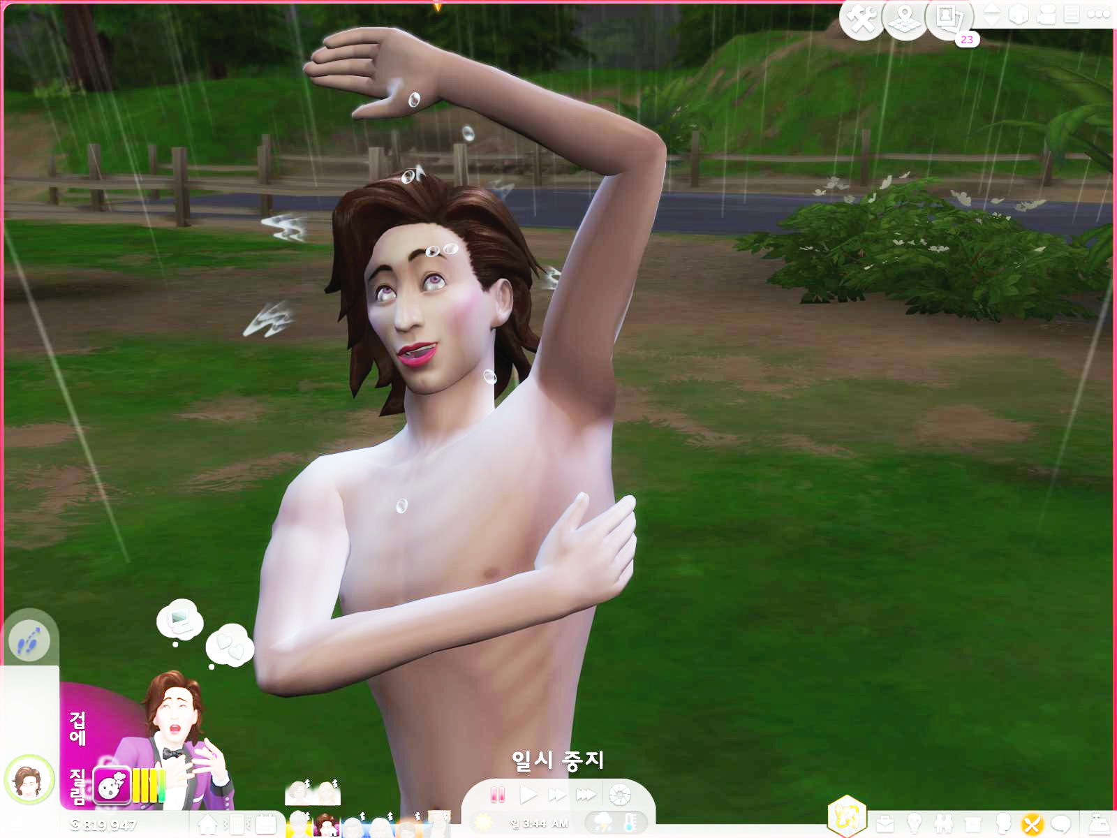 야호 난 자유야!- 프리즌 브레이크 심즈. 빗속에서 자유를 느끼며 춤추는 핑크빛 영혼의 음악가