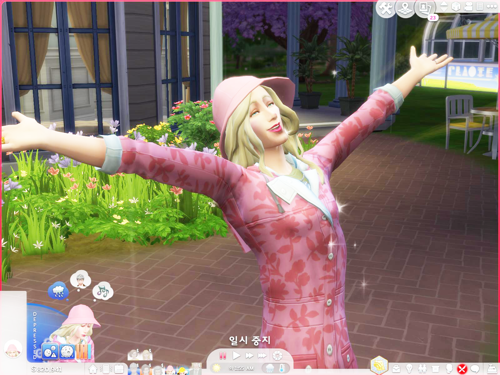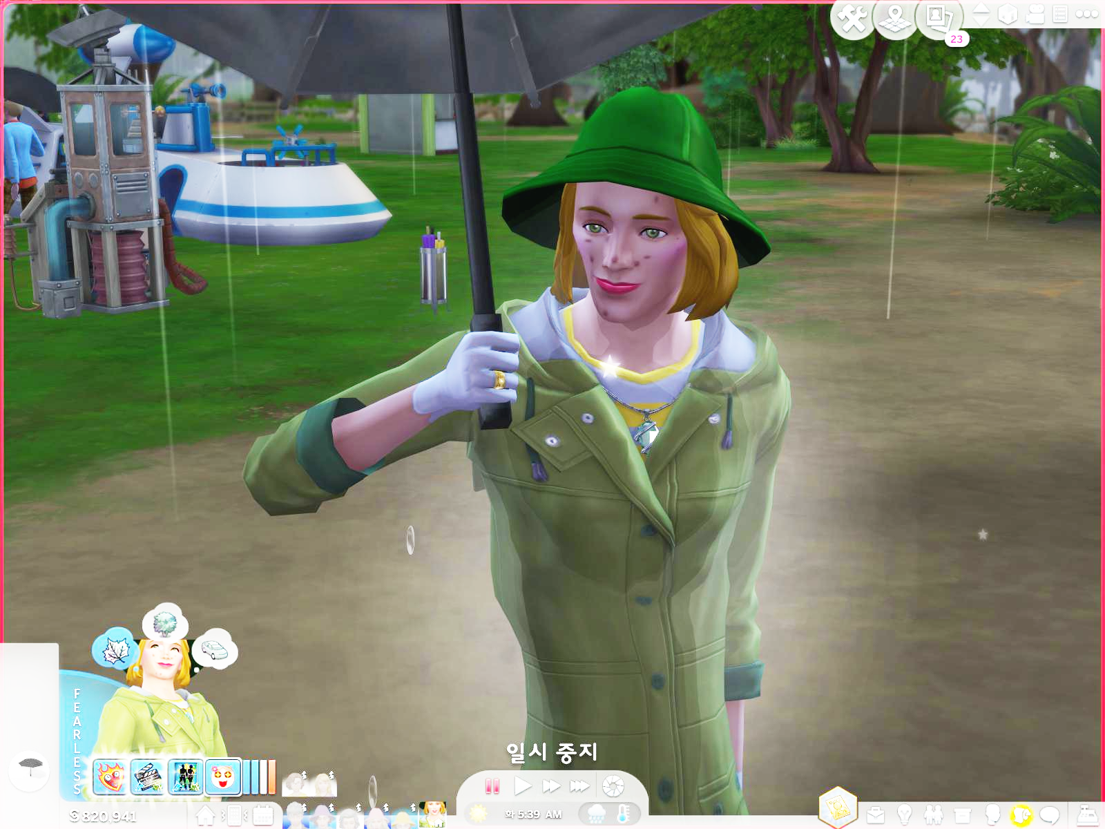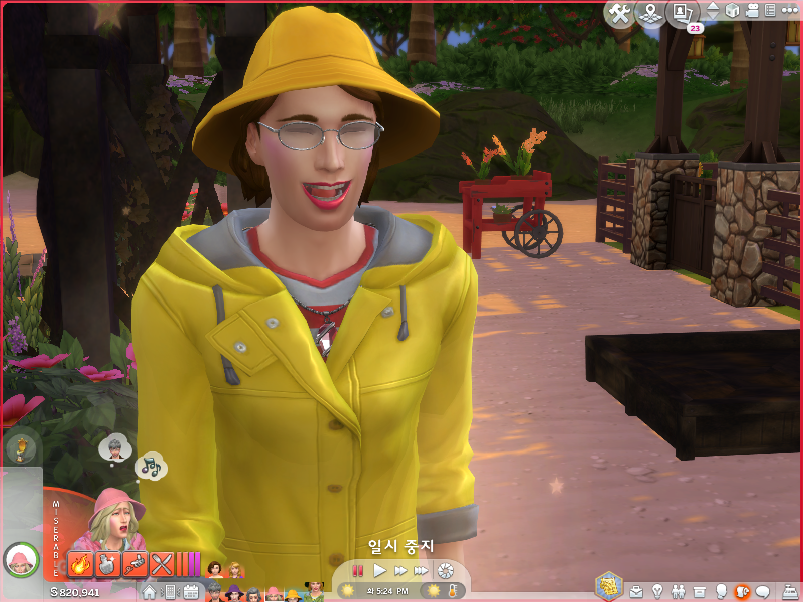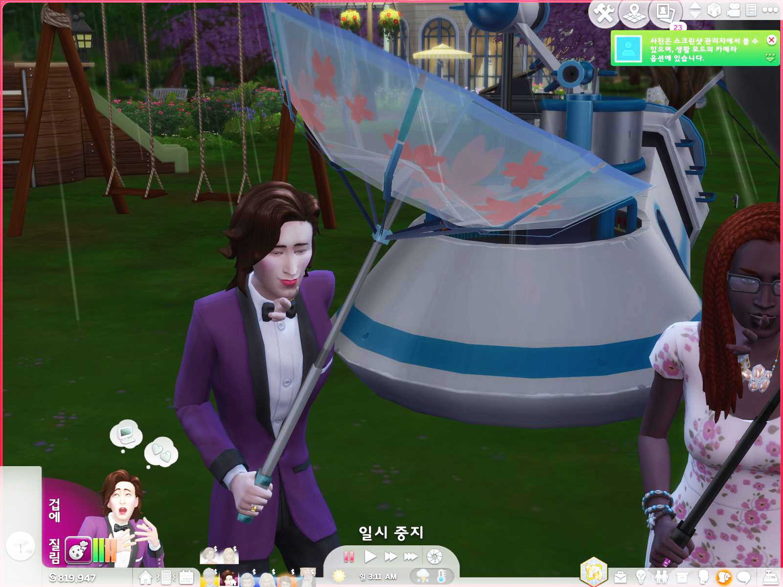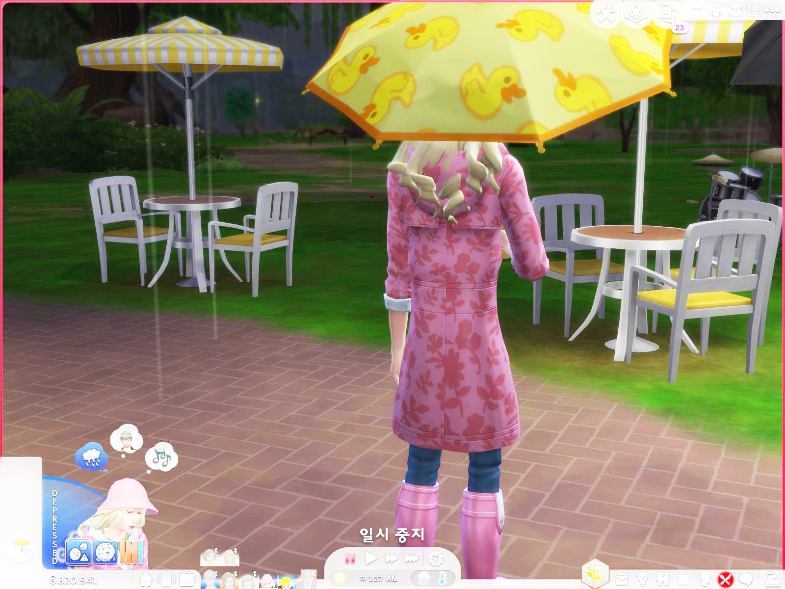 야호 난 자유야!- 프리즌 브레이크 심즈. 빗속에서 자유를 느끼며 춤추는 핑크빛 영혼의 음악가