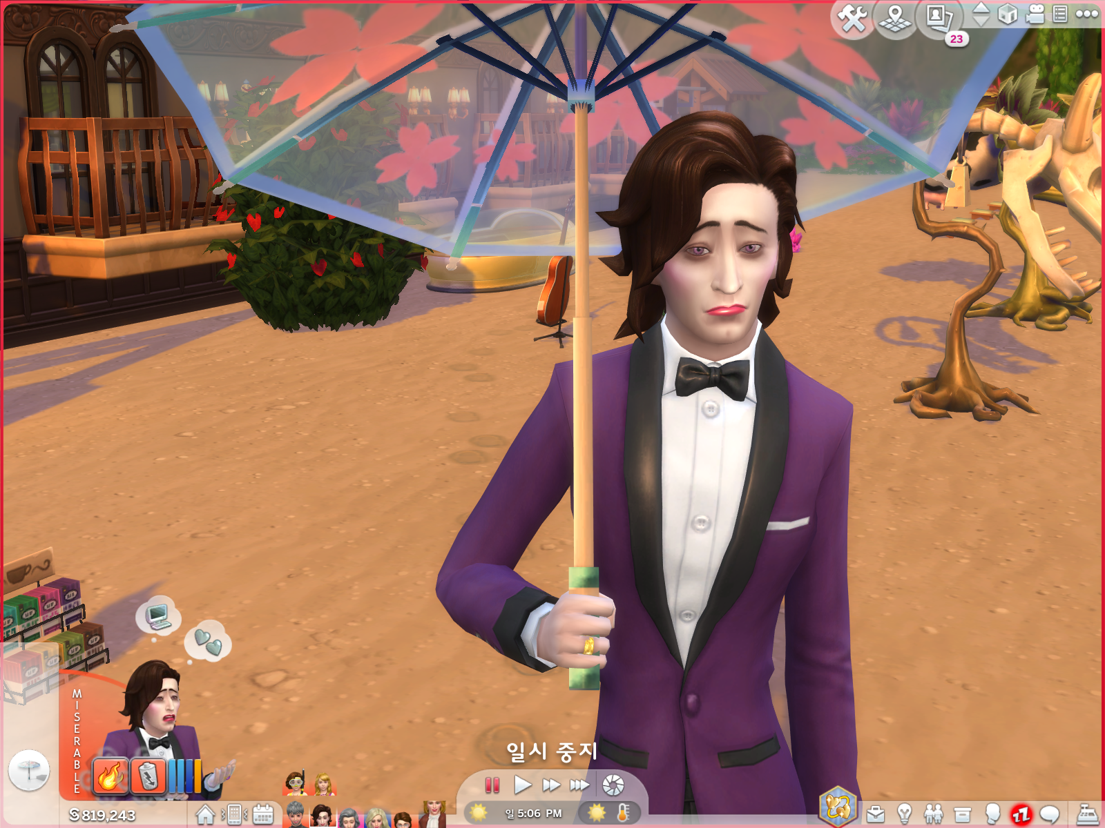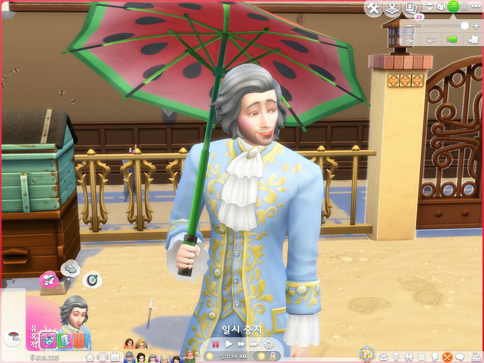 나 수박 먹고싶어 우산- 남자가 살았던 전생에는 수박이 없었다. 그리고 심즈 세계에서도 수박이란 과일은 존재하지 않는다. 하지만 수박 모양의 우산은 존재하는 아이러니! 남자는 우산을 보면서 수박이라는 상상 속 과일을 언젠가 먹어보기를 꿈꾼다. 그런데 수박이 뭐지??