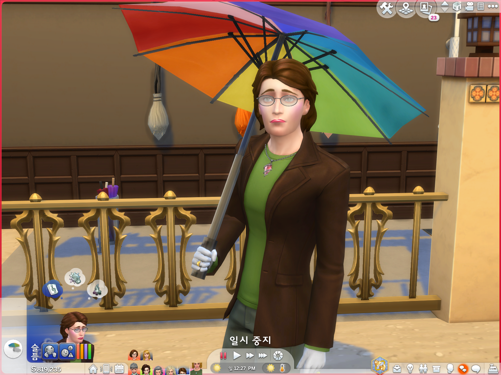 현실에서도 흔하디 흔한 무지개 우산- 인간세계에서 한때 유행했던 무지개 우산. 언젠가 부터 심즈 세계에서도 하나 둘 모습을 드러냈다. 단 심즈세계에서 이 우산을 자주 착용할 경우, 성 소수자로 오해를 받는 경우가 많다고 한다.