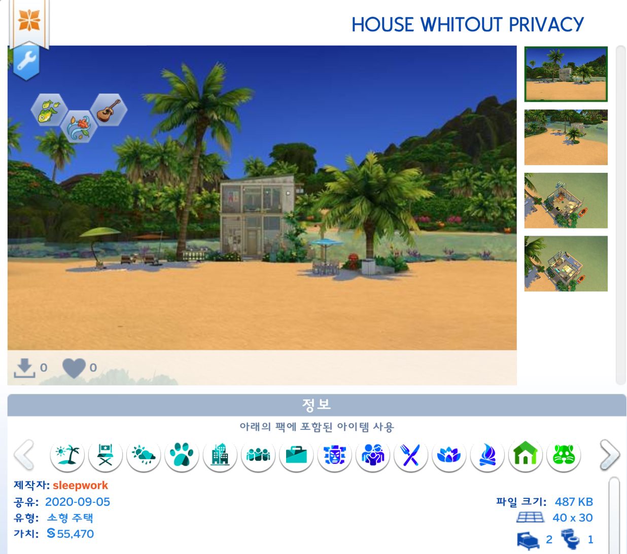 심즈4에서는 처음으로 만드는 하우스라 소박하게 소형 하우스를 제작해 보았어요.