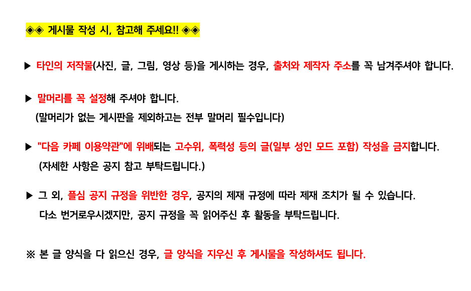 답댓글 작성자심스 작성자 본인 여부 작성자 작성시간 20.09.10 감사합니다.. 괜찮으시면 EA 갤러리에 하트좀 눌러주세요