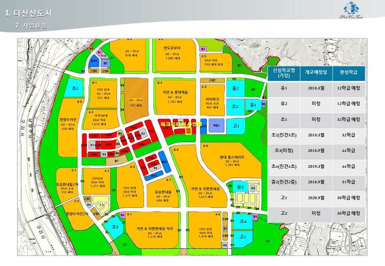 다산신도시 파크뷰타워 상가는 초 중 고와 인접해