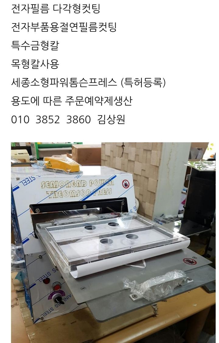 [톰슨기]반자동 소형톰슨프레스 실리콘 의료소재 정밀컷팅 목형칼사용 소형컷팅프레스 주문제작 010 3852 3860 김상원