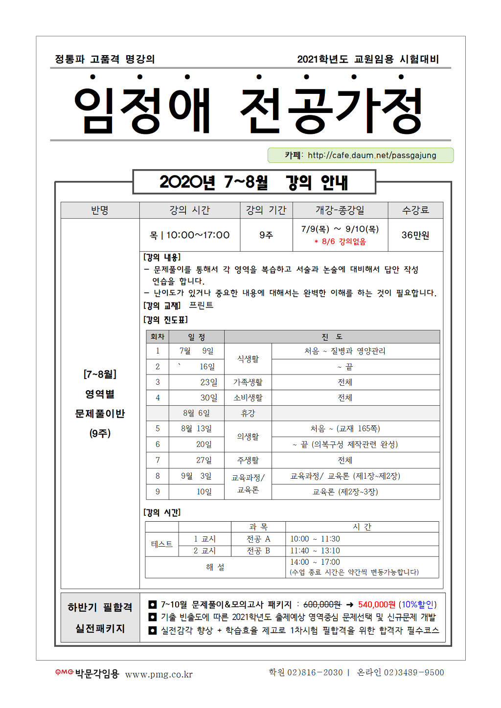 ★임정애 전공가정★ 7-11월 강의 안내 및 하반기 학습 방법 안내 영상! 작성자박문각임용|작성시간20.06.18|조회수629 목록 댓글 0 글자크기 작게가 글자크기 크게가 박문각임용 임정애 전공가정7-11월 강의 안내 및 하반기 학습 방법 안내 영상 다음검색 현재 게시글 추가 기능 열기 북마크 공유하기 신고 센터로 신고 댓글 댓글 0 댓글쓰기 답글쓰기 댓글 리스트