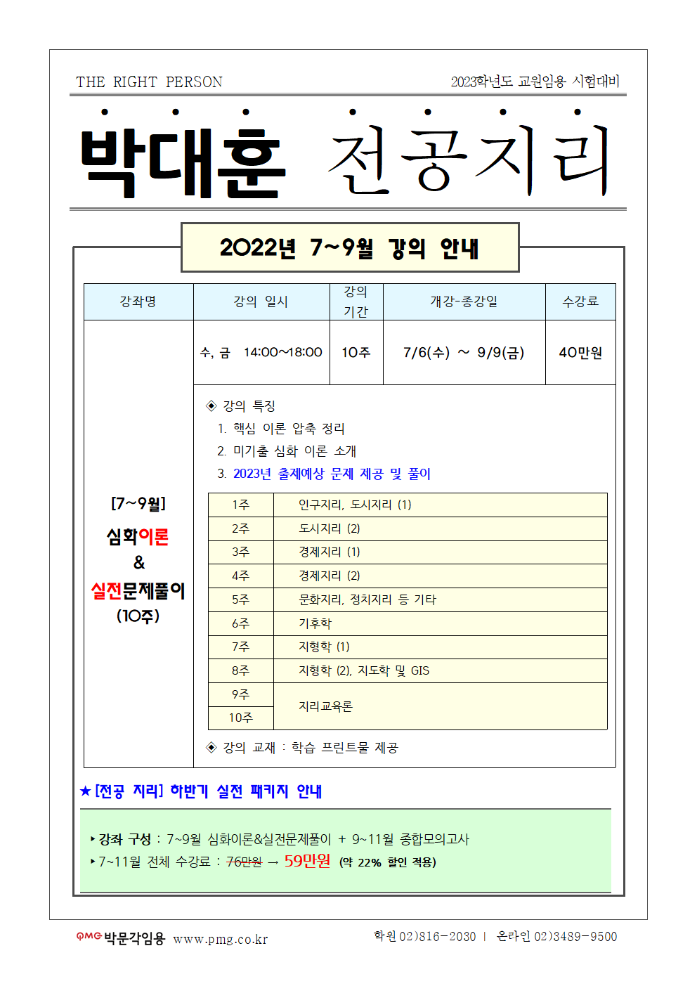 [박대훈 전공지리] 2022년 7-8월 강의 안내! 작성자박문각임용온라인|작성시간22.06.17|조회수167 목록 댓글 0 글자크기 작게가 글자크기 크게가 직강 신청하러 가기 인강 신청하러 가기 [박문각임용] 박대훈 전공지리 2023학년도 대비 합격전략 설명회 다음검색 현재 게시글 추가 기능 열기 북마크 공유하기 신고 센터로 신고 댓글 댓글 0 댓글쓰기 답글쓰기 댓글 리스트