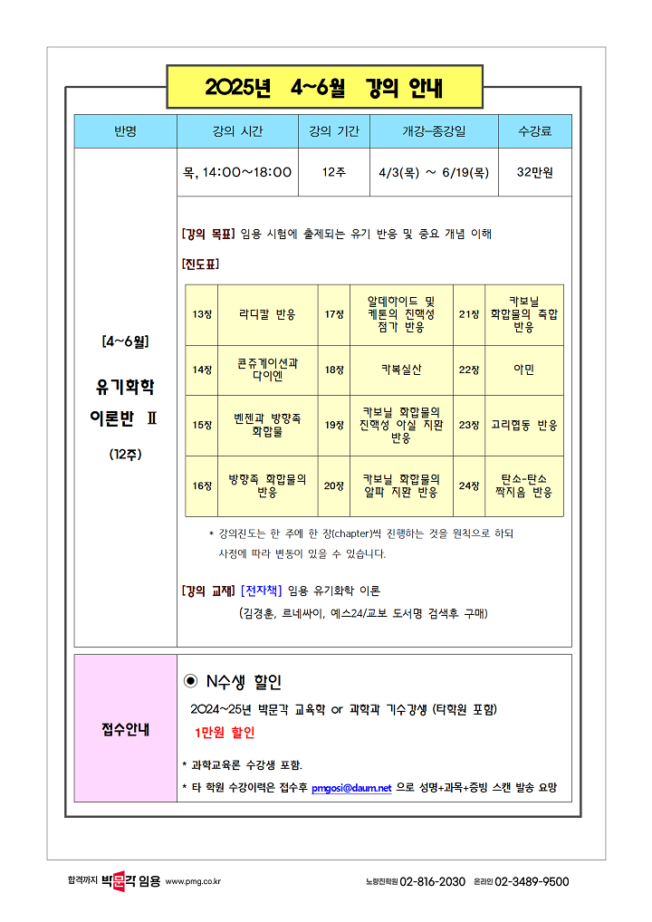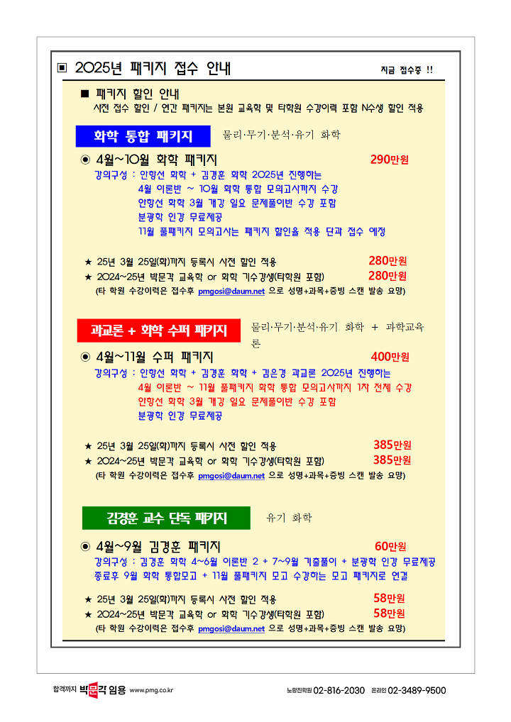 ★김경훈 유기화학★ <유기화학, 합격 Chemistry!> 2025년 4-6월 강의 및 4-9월 패키지 안내! 작성자박문각임용온라인|작성시간25.02.25|조회수69 목록 댓글 0 글자크기 작게가 글자크기 크게가 다음검색 현재 게시글 추가 기능 열기 북마크 공유하기 신고 센터로 신고 댓글 댓글 0 댓글쓰기 답글쓰기 댓글 리스트