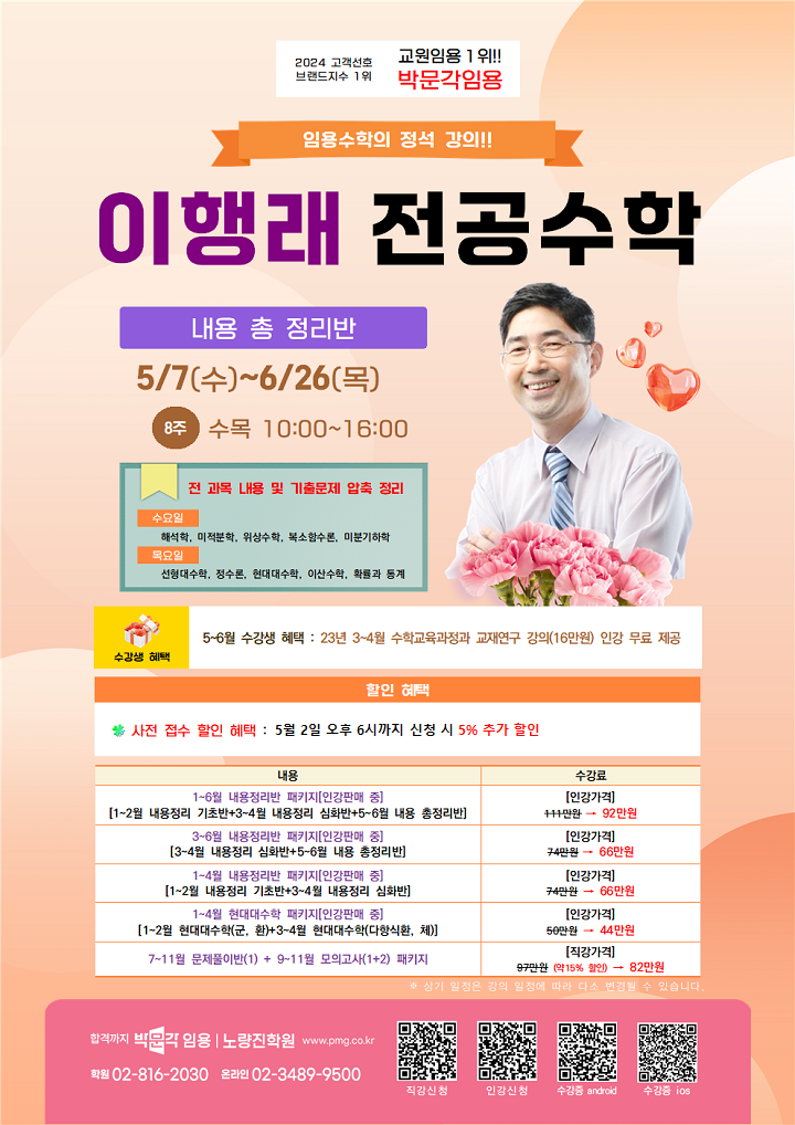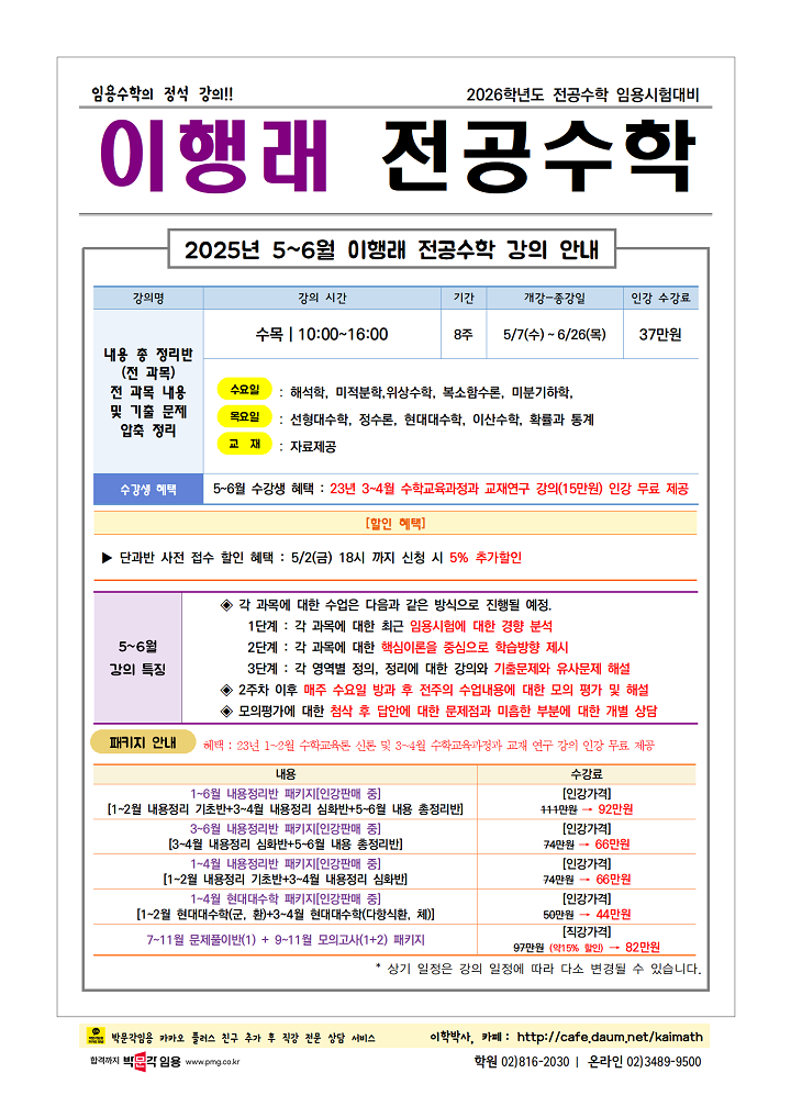 ★이행래 전공수학★ <임용수학의 정석 강의!> 2025년 5-6월 강의계획 안내! 작성자박문각임용온라인|작성시간25.04.11|조회수33 목록 댓글 0 글자크기 작게가 글자크기 크게가 👆위 이미지 클릭 시 신청 페이지로 이동👆 다음검색 현재 게시글 추가 기능 열기 북마크 공유하기 신고 센터로 신고 댓글 댓글 0 댓글쓰기 답글쓰기 댓글 리스트