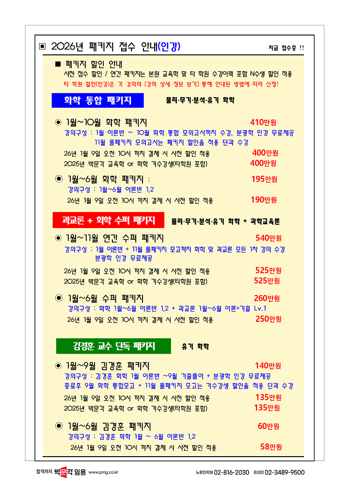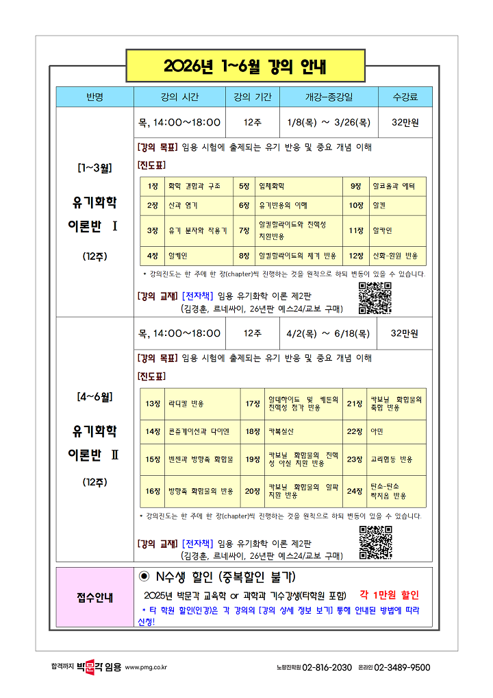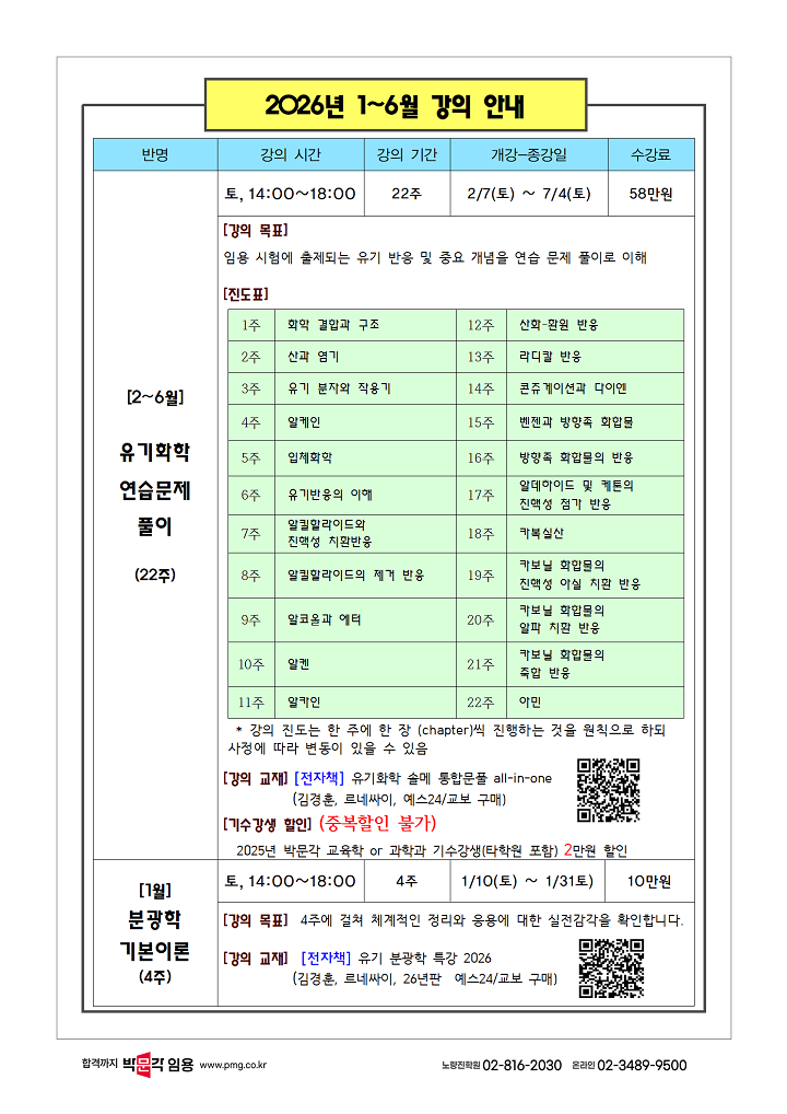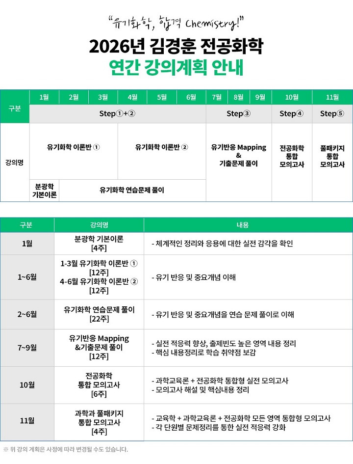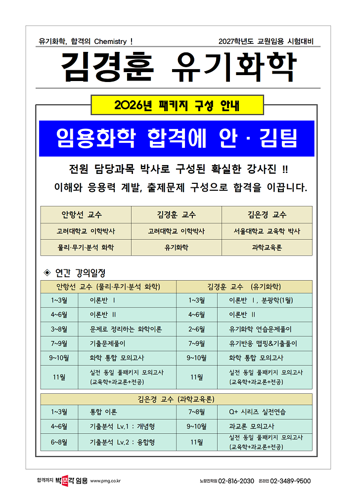 ★김경훈 유기화학★ <유기화학, 합격 Chemistry!> 2026년 1-3월 강의 및 연간 패키지 안내! 작성자박문각임용온라인|작성시간25.12.26|조회수4 목록 댓글 0 글자크기 작게가 글자크기 크게가 다음검색 현재 게시글 추가 기능 열기 북마크 공유하기 신고 센터로 신고 댓글 댓글 0 댓글쓰기 답글쓰기 댓글 리스트