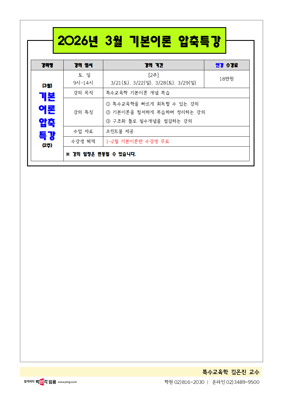 ★김은진 특수★ 2026년 1-3월 강의 및 1-11월 패키지 안내! (인강) 작성자박문각임용온라인|작성시간25.12.26|조회수15 목록 댓글 0 글자크기 작게가 글자크기 크게가 다음검색 현재 게시글 추가 기능 열기 북마크 공유하기 신고 센터로 신고 댓글 댓글 0 댓글쓰기 답글쓰기 댓글 리스트