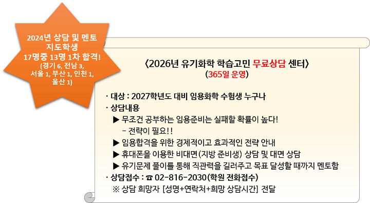 ★이호 전공화학★ <맥이 통하는 유기화학!> 2027학년도 대비 연간 강의계획 안내! 작성자박문각임용온라인|작성시간25.12.31|조회수1 목록 댓글 0 글자크기 작게가 글자크기 크게가 다음검색 현재 게시글 추가 기능 열기 북마크 공유하기 신고 센터로 신고 댓글 댓글 0 댓글쓰기 답글쓰기 댓글 리스트