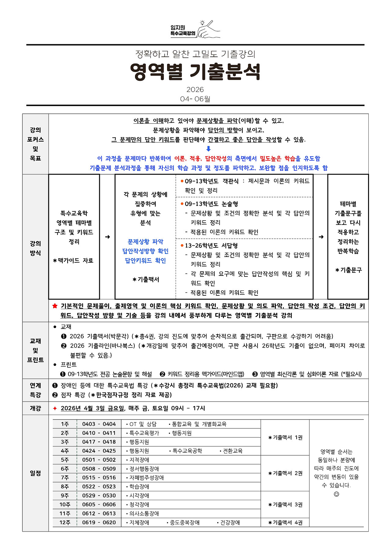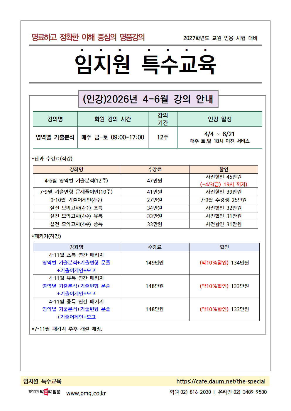 ★임지원 특수★ 2026년 4-6월 영역별 기출분석!&4-11월 패키지 안내!(인강) 작성자박문각임용온라인|작성시간26.03.16|조회수15 목록 댓글 0 글자크기 작게가 글자크기 크게가 .🍀임지원 특수 인강 수강신청 하러가기🍀 💻1-11월 연간 일정 확인하기📃 다음검색 현재 게시글 추가 기능 열기 북마크 공유하기 신고 센터로 신고 댓글 댓글 0 댓글쓰기 답글쓰기 댓글 리스트