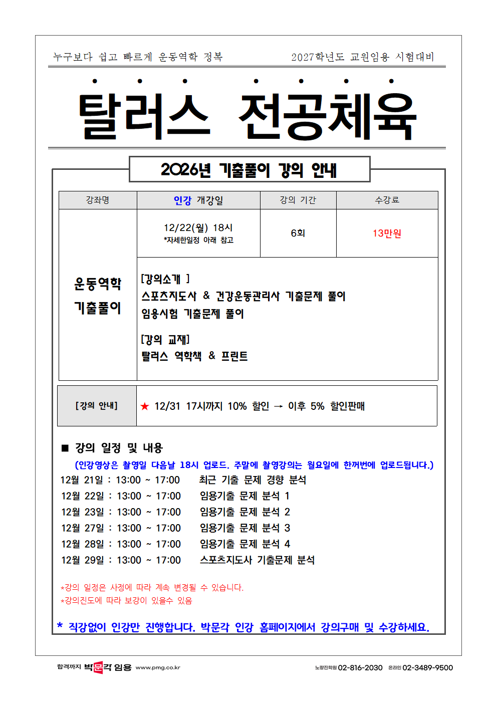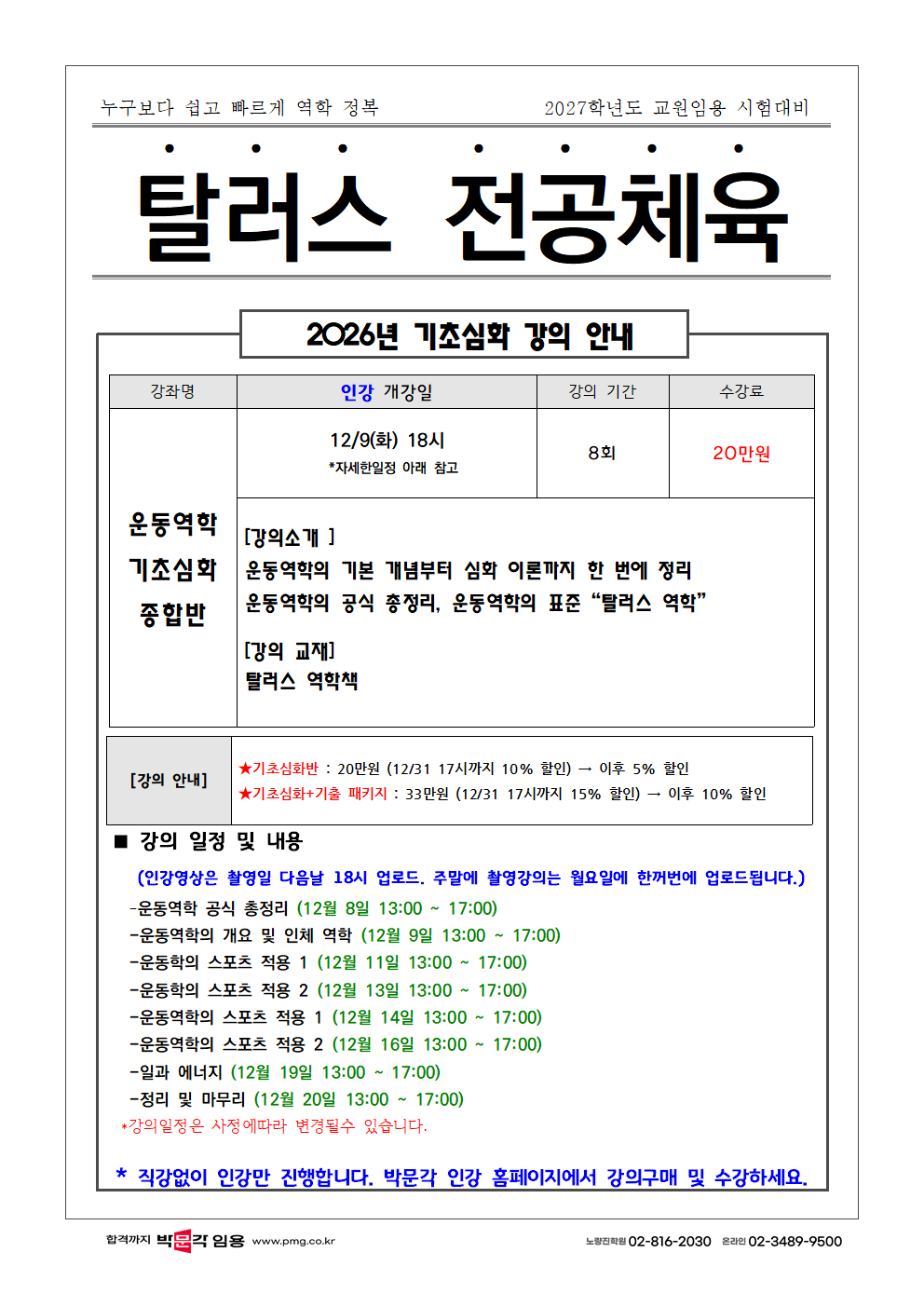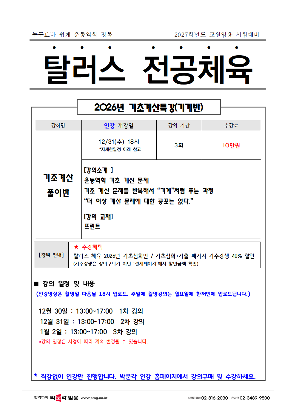 ★탈러스 전공체육★ 2026년 기초심화 종합반 및 기출풀이 강의 안내! (인강) 작성자박문각임용온라인|작성시간26.03.30|조회수1 목록 댓글 0 글자크기 작게가 글자크기 크게가 [클릭!] 👉 인강 신청하기직강없이 인강만 진행 다음검색 현재 게시글 추가 기능 열기 북마크 공유하기 신고 센터로 신고 댓글 댓글 0 댓글쓰기 답글쓰기 댓글 리스트