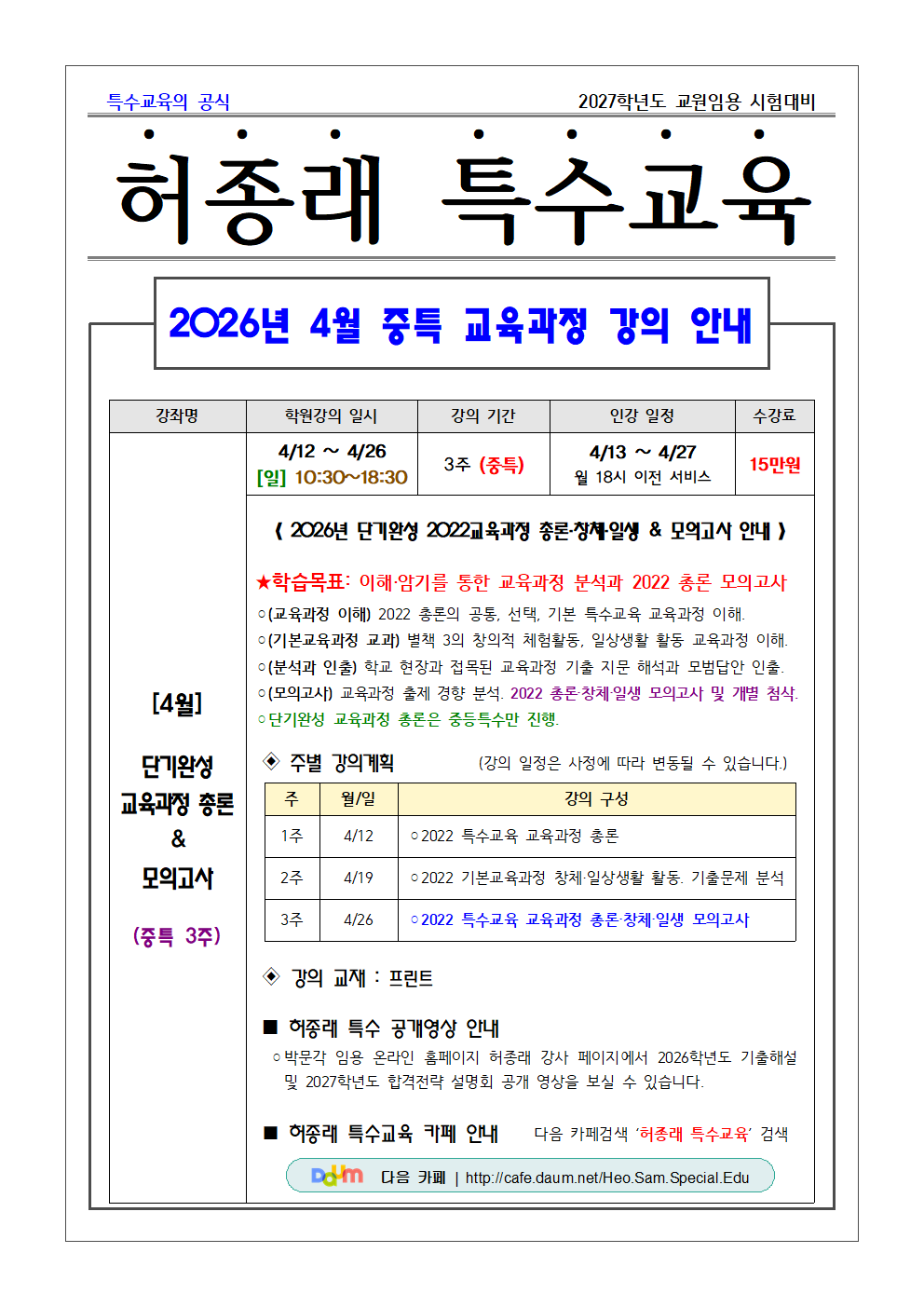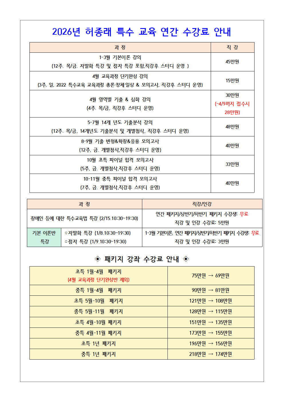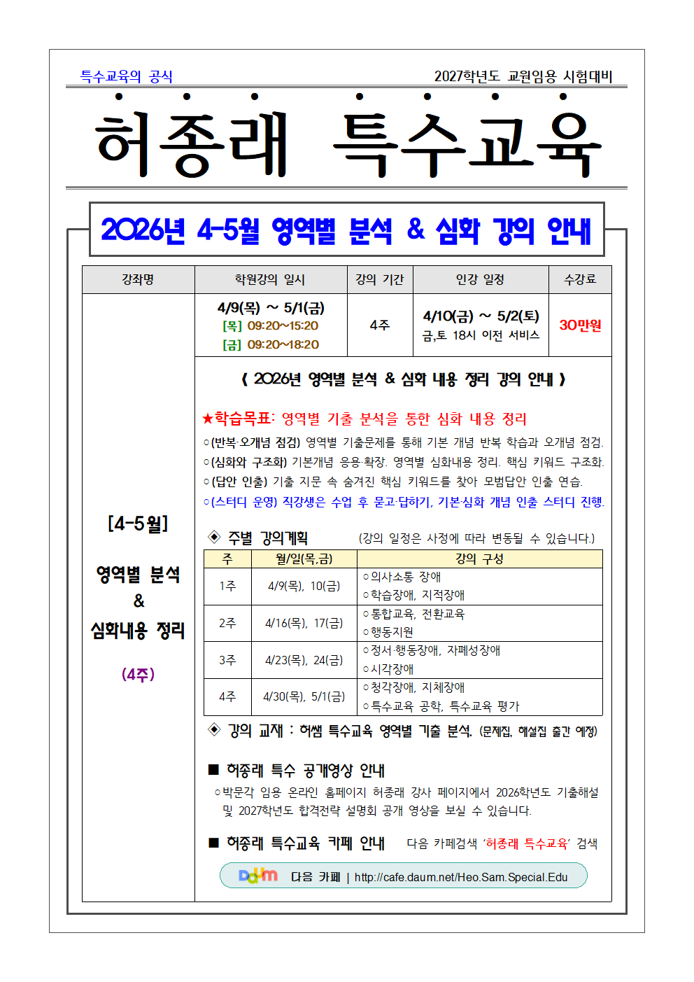 ★허종래 특수★ 2026년 4-5월 강의&4-11월 패키지 안내!(인강) 작성자박문각임용온라인|작성시간26.04.01|조회수5 목록 댓글 0 글자크기 작게가 글자크기 크게가 [클릭]인강 수강하러 가기! 다음검색 현재 게시글 추가 기능 열기 북마크 공유하기 신고 센터로 신고 댓글 댓글 0 댓글쓰기 답글쓰기 댓글 리스트