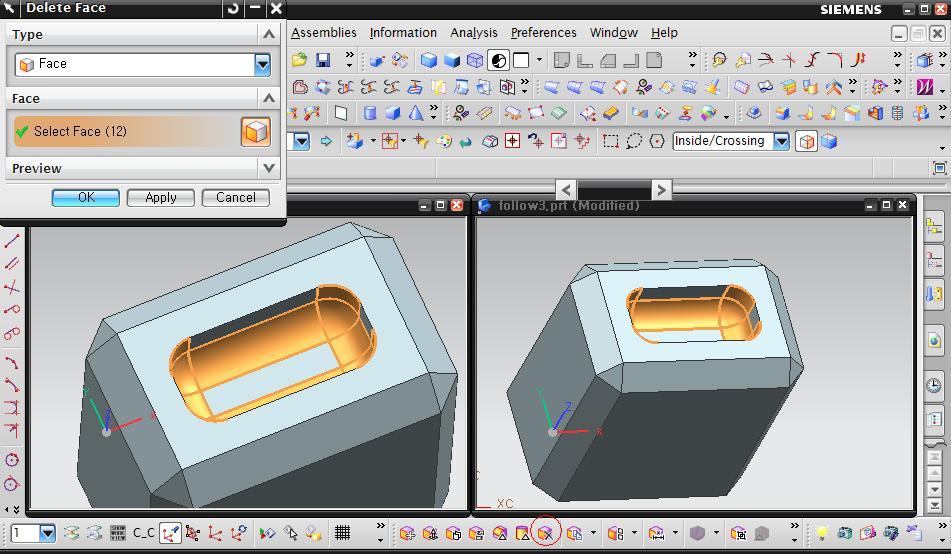 없애고자 하는 면을 선택 후 OK버튼을 눌러주시면 됩니다.