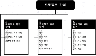 5장. 프로젝트 범위 관리(Project Scope Management)는 프로젝트가 필요한 모든 작업을 포함하고 있으며, 프로젝트의 성공적인 완결을 위해 필요한 작업을 포함하고 있는지를 확실하게 하기 위해 필요한 프로세스를 기술하고 있다. 여기에는 착수(initiation), 범위 계획(scope planning), 범위 정의(scope definition), 범위 확정(scope verification), 범위 변화 통제(scope change control)로 구성되어 있다.