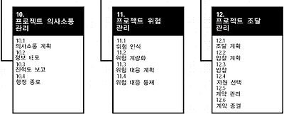11장. 프로젝트 위험 관리(Project Resk Management는 프로젝트 리스크를 인식하고(identifying), 분석하고(analyzing), 대응하는 것(responding)과 관련된 프로세스를 기술하고 있다. 위험 인식(risk identification), 위험 계량화(risk quantification), 위험 대응 계획(risk response planning), 위험 대응 통제(risk response coltrol) 등으로 구성되어 있다.