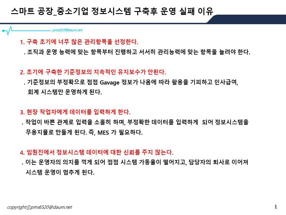 스마트공장_중소기업 정보시스템 구축후 운영 실패 이유 작성자Pyo ManSu(대한민국산업현장교수)|작성시간22.01.16|조회수19 목록 댓글 0 글자크기 작게가 글자크기 크게가 다음검색 현재 게시글 추가 기능 열기 북마크 공유하기 신고 센터로 신고 댓글 댓글 0 댓글쓰기 답글쓰기 댓글 리스트