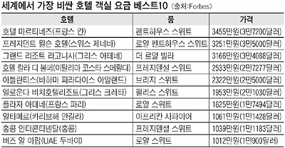 세계에서 가장 비싼 호텔 객실로 꼽혔다. 〈표 참조〉
