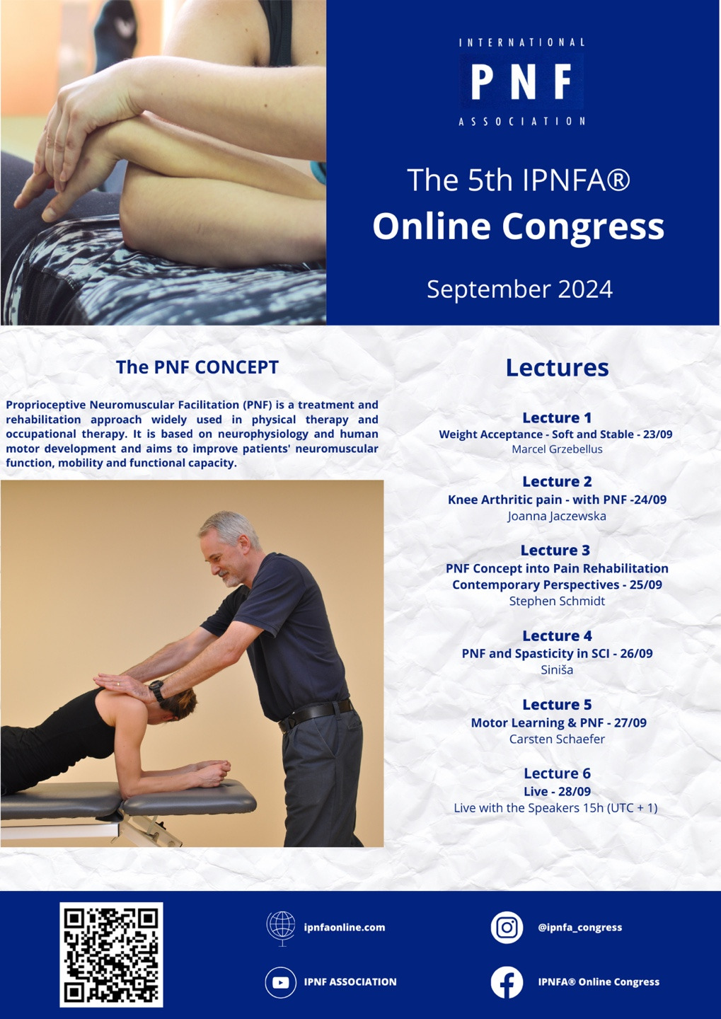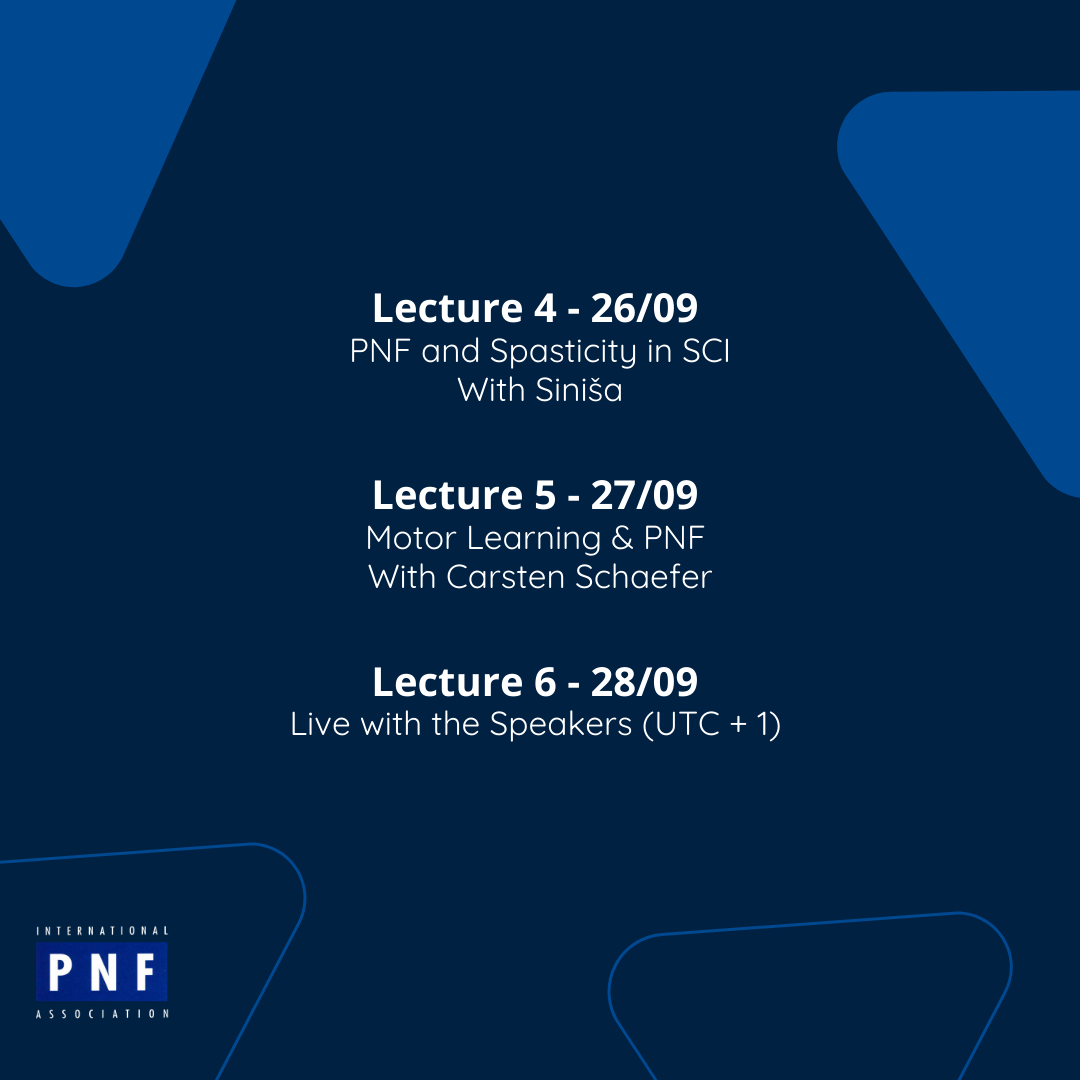 This year, the International PNF Association is proud to host the 5th Online Congress, offering an immersive learning experience on the PNF concept to professionals across the globe. Over six days, you will have access to insightful pre-recorded lectures by experienced IPNFA instructors from various continents, followed by a live interaction session with the speakers on the final day.