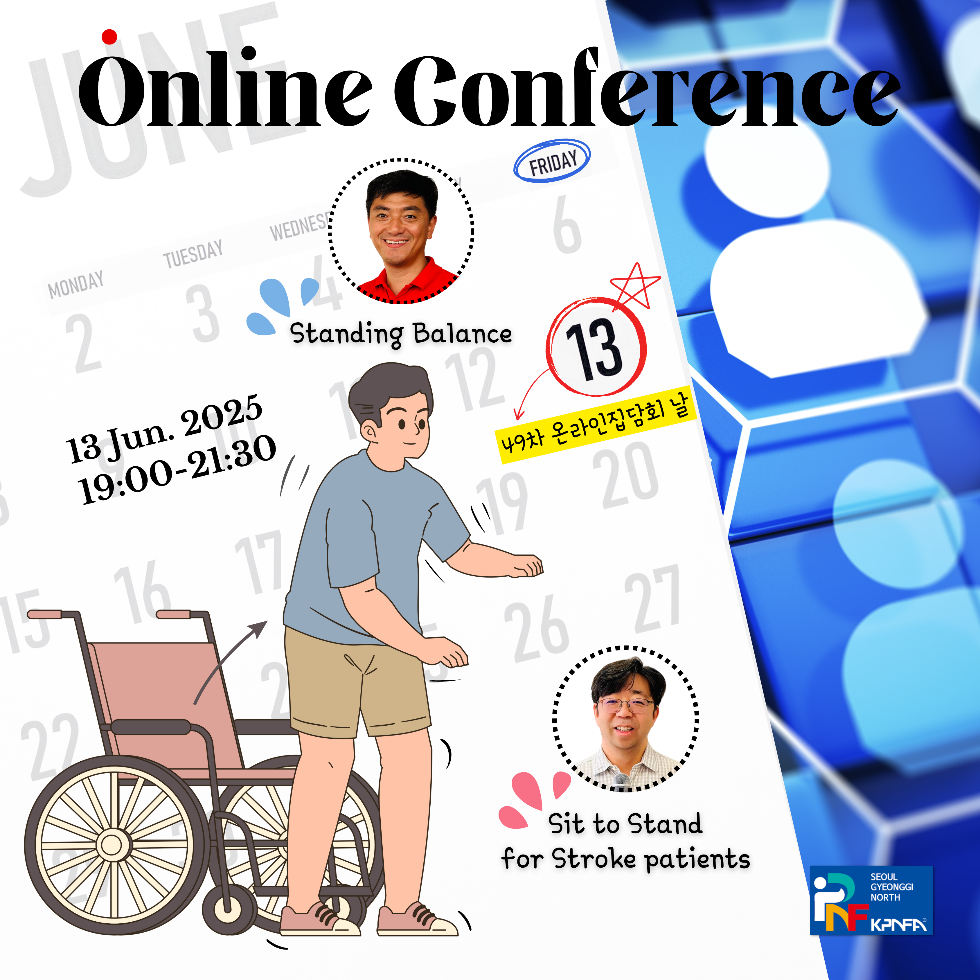 | 안녕하세요 PNF 서울경기북부회 입니다. 이번 5월 온라인 집담회에 보내주신 많은 관심과 성원에 깊이 감사드립니다. 이에 힘입어 더 많은 분들과 소통할 수 있도록 6월에도 온라인 집담회를 다시 개최하게 되었습니다. 2025년 06월 13일 금요일, 이번 집담회는 우영근 교수님의 "Sit to Stand for stroke patients"와 문상현 부회장님의 "Standing Balance"로 진행됩니다. 여러분의 많은 관심과 적극적인 참여 부탁드립니다. 감사합니다. - 다 음 - 가. 일 시 : 2025년 06월 13일 (금요일) 19:00~21:30 나. 대 상 : 물리치료사, 작업치료사, 의사 다. 인 원 : 160명 라. 참여방식 : 2025년 06월 13일 금요일 Webex Meeting Live 마. 주 제 : Sit to Stand for stroke patients - 우영근 Standing Balance - 문상현 바. 강 사 : 우영근 (전주대학교 물리치료학과, IPNFA® Advanced Instructor, KPNFA® Master Instructor) 문상현 (바른움직임연구소, PNF 서울경기북부회 부회장, IPNFA® Assistant, KPNFA® Senior Instructor) 사. 참 가 비 : 25,000원, 농협은행 317-0029-8204-11 예금주 : 대한고유수용성신경근촉진법학회 아. 접수기간 : 2025년 5월 15일 ~ 선착순 마감까지 자. 접수방법 : 온라인 자동 접수(별첨 문서 참조) 차. 문 의 : 서울경기북부 네이버 카페 http://cafe.naver/pnfseoul Q&A 게시판 카. 환불규정 : 환불불가 (신청 후 환불되지 않으니 신중히 신청하시길 바랍니다.) |