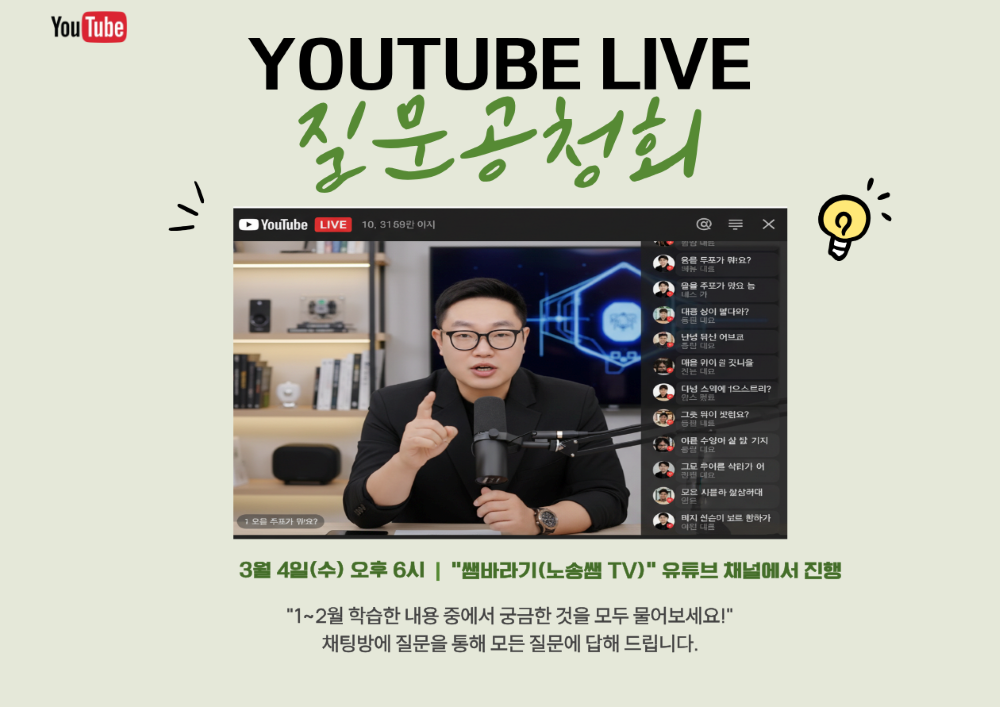 질문공청회가 유튜브 라이브를 통해 진행됩니다.