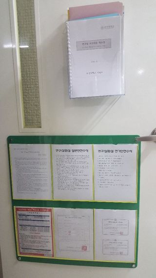 ▲실험실 입구 사고대응 매뉴얼, 안전수칙 등