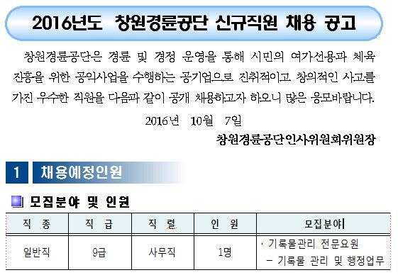 [채용공고] 창원경륜공단 기록물관리 전문요원 채용 작성자장혜진|작성시간16.10.07|조회수175 목록 댓글 0 글자크기 작게가 글자크기 크게가 안녕하십니까. 학과사무실입니다.제목과 같이 창원경륜공단에서 기록관리물 전문 요원 채용하고 있습니다.상세한 내용은 첨부파일 참조 바랍니다.감사합니다. 2016년 신규인력 채용공고문.hwp 2016년 신규인력 채용관련 첨부서류.hwp 첨부파일첨부된 파일이 3개 있습니다. jpg 파일 캡처.jpg 다운로드 hwp 파일 2016년 신규인력 채용공고문.hwp 다운로드 hwp 파일 2016년 신규인력 채용관련 첨부서류.hwp 다운로드 다음검색 현재 게시글 추가 기능 열기 북마크 공유하기 신고 센터로 신고 댓글 댓글 0 댓글쓰기 답글쓰기 댓글 리스트