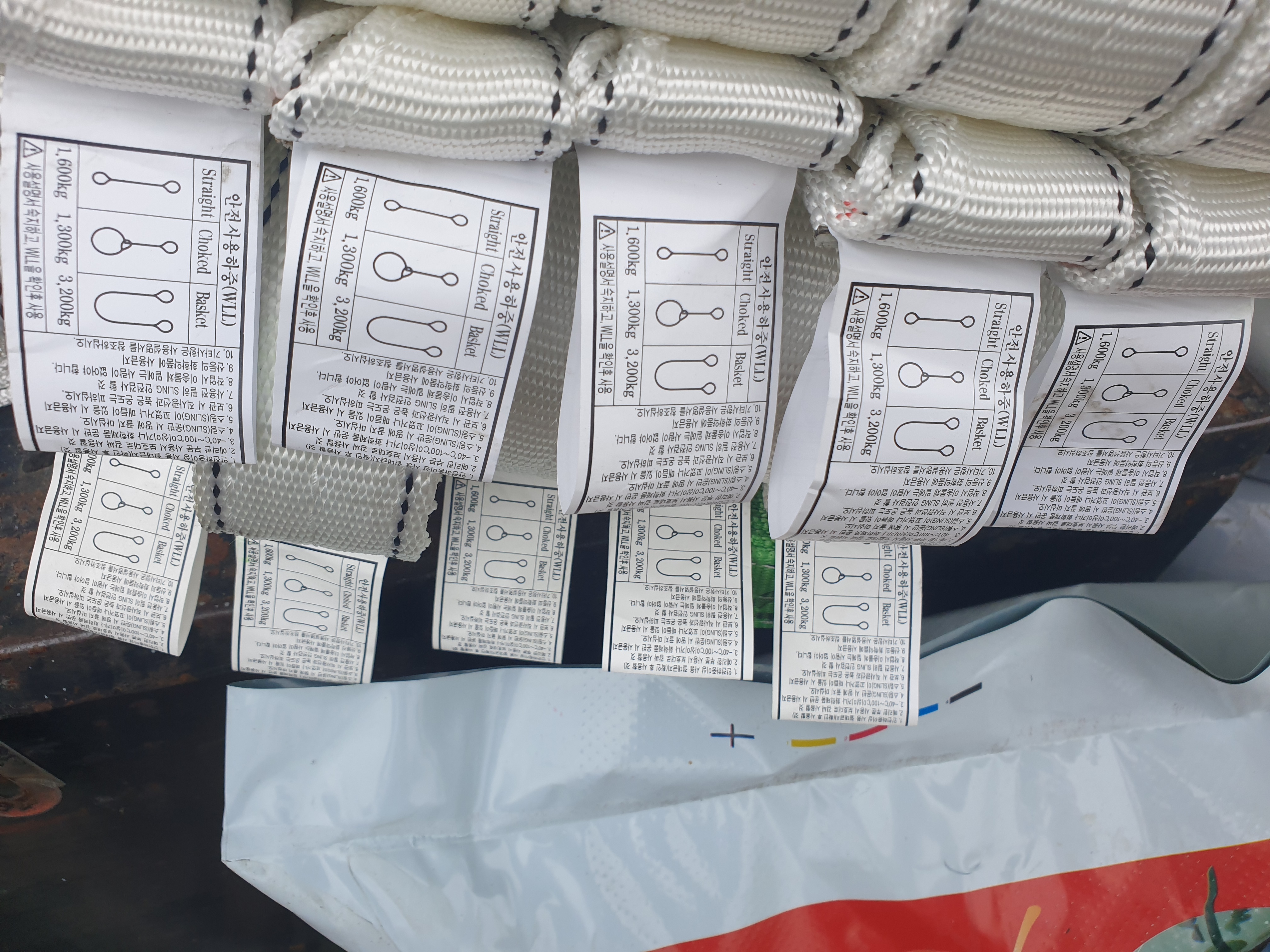현장에서 물건을 인양하고 하차할때 주로 사용하는 슬링벨트도 제원이 있습니다. 가끔 현장에서 낡은 벨트나 와이어등으로 물건을 인양하는 경우가 있지만 극히 안좋은 방법입니다.