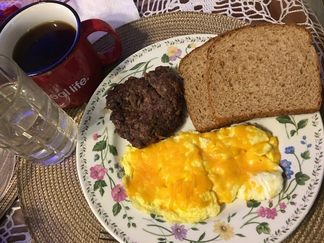 시아버지표 사슴 소시지 패티와 스크램블 에그에 치즈 올리고요