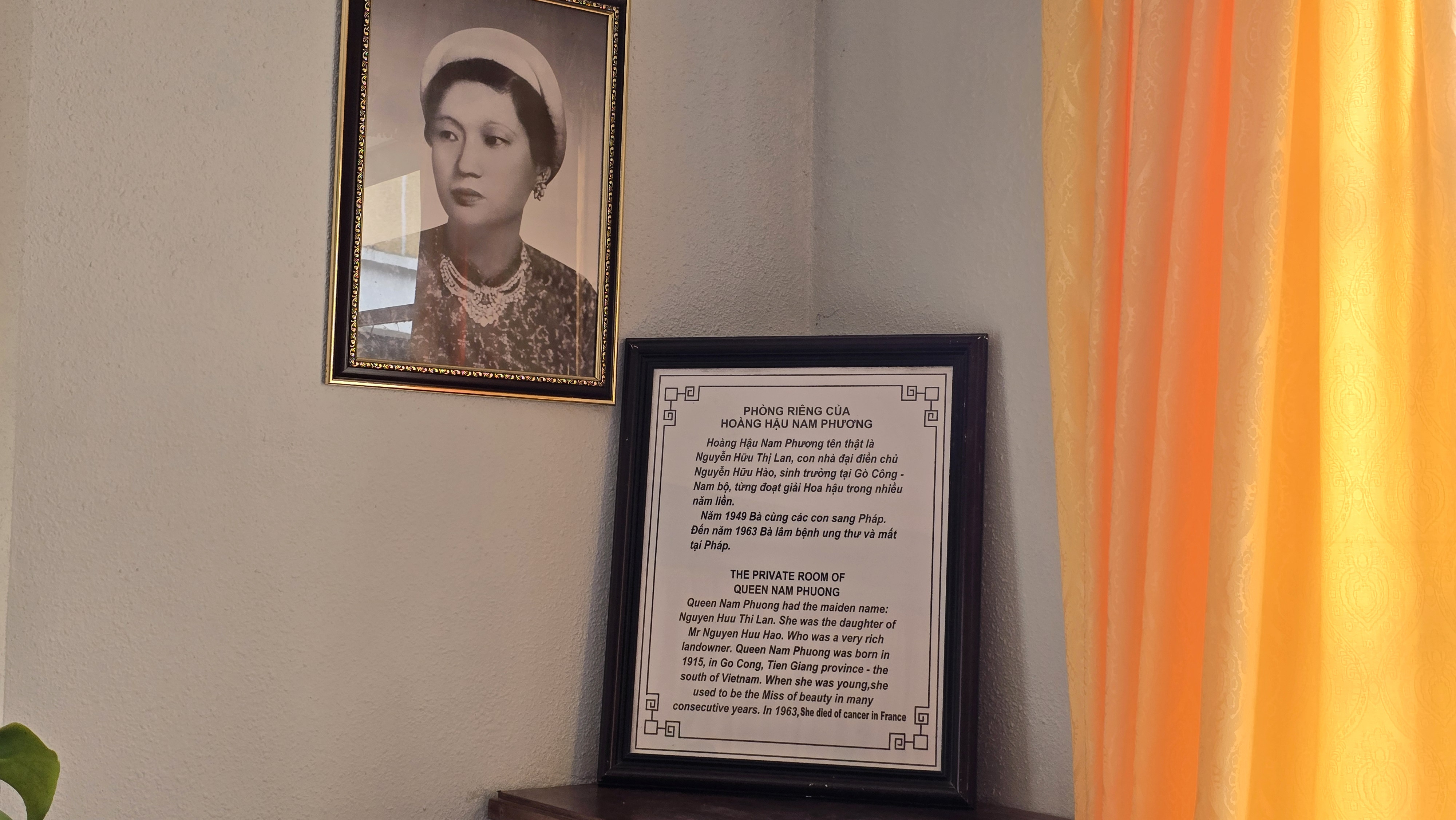 남프엉의 개인적인 방이라는 설명과 사진....아주 미인이었다고 한다.